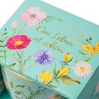 Das filigrane Blütendesign und der inspirierende Spruchsorgen für Vorfreude auf die nächste gemütliche Pause.