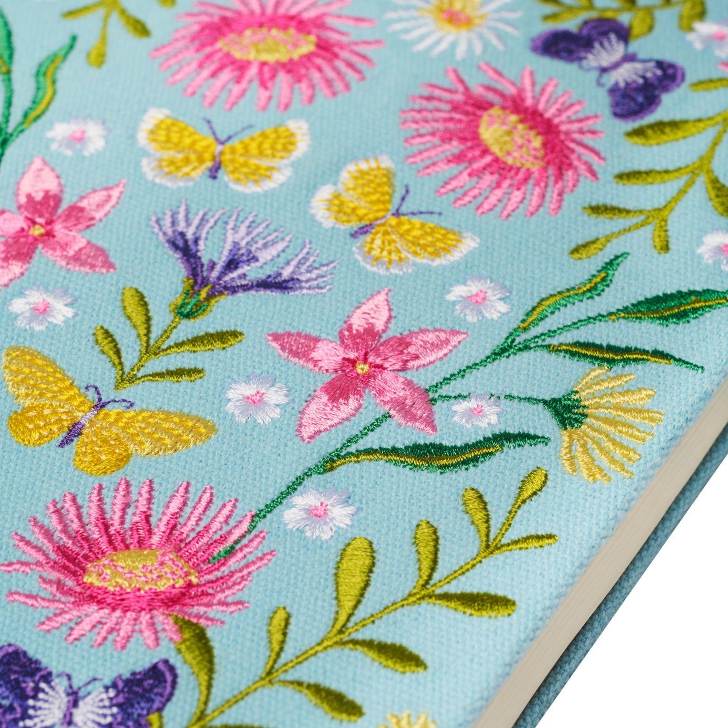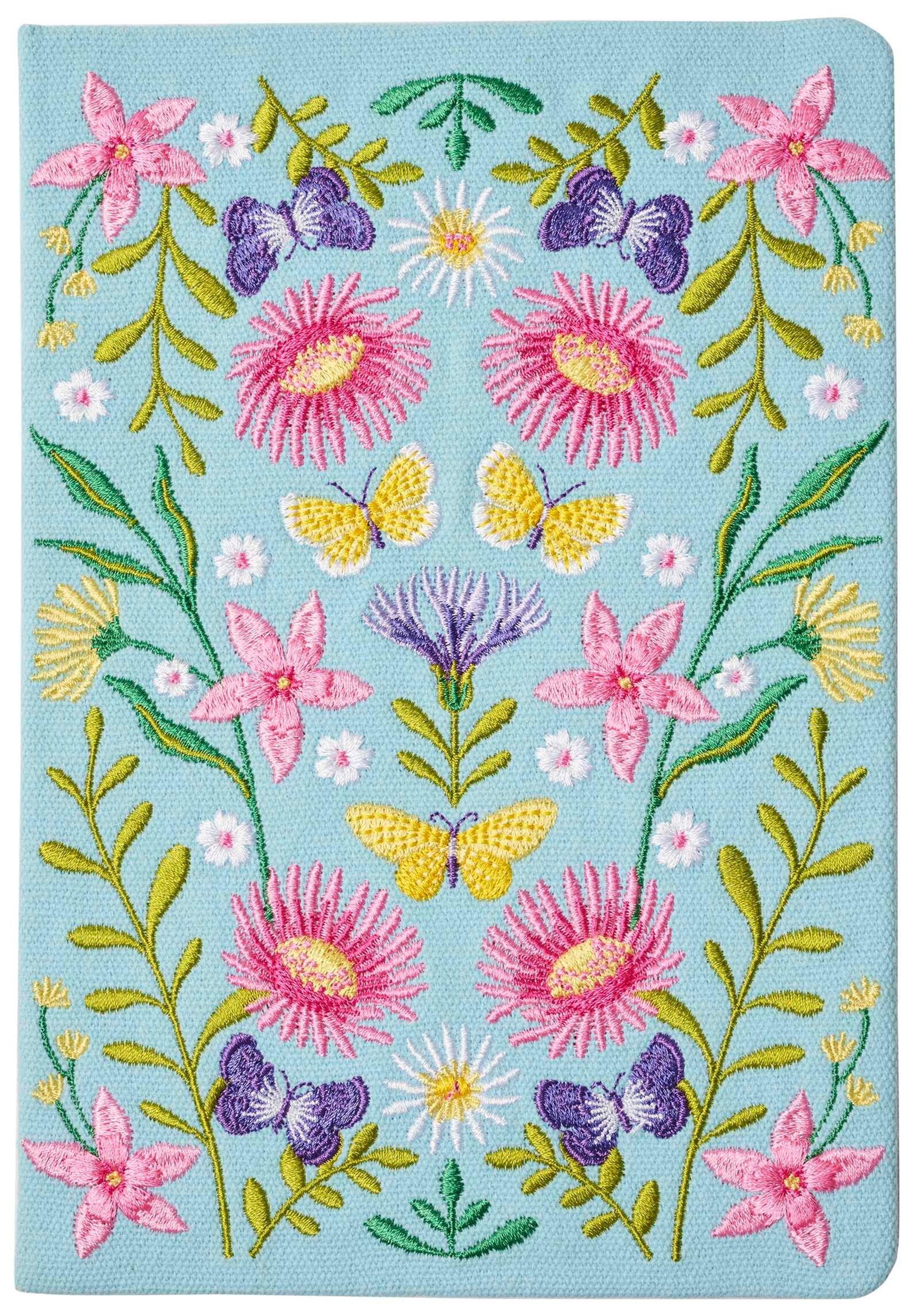 Dieses Journal im DIN A5-Format ist der perfekte Ort, um all deine Ideen, Träume und Gedanken festzuhalten. Der einzigartige , hochwertige Stoffeinband mit den filigranen, gestickten Blüten- und Schmetterlingsmotiven ist nicht nur besonders schön, sondern auch robust, sodass das Notebook bedenkenlos in jeder Tasche mitgenommen werden kann. Es ist mehr als ein Notizbuch, es ist ein Lieblingsstück , das zur Kreativität und neue Gedanken anregt.