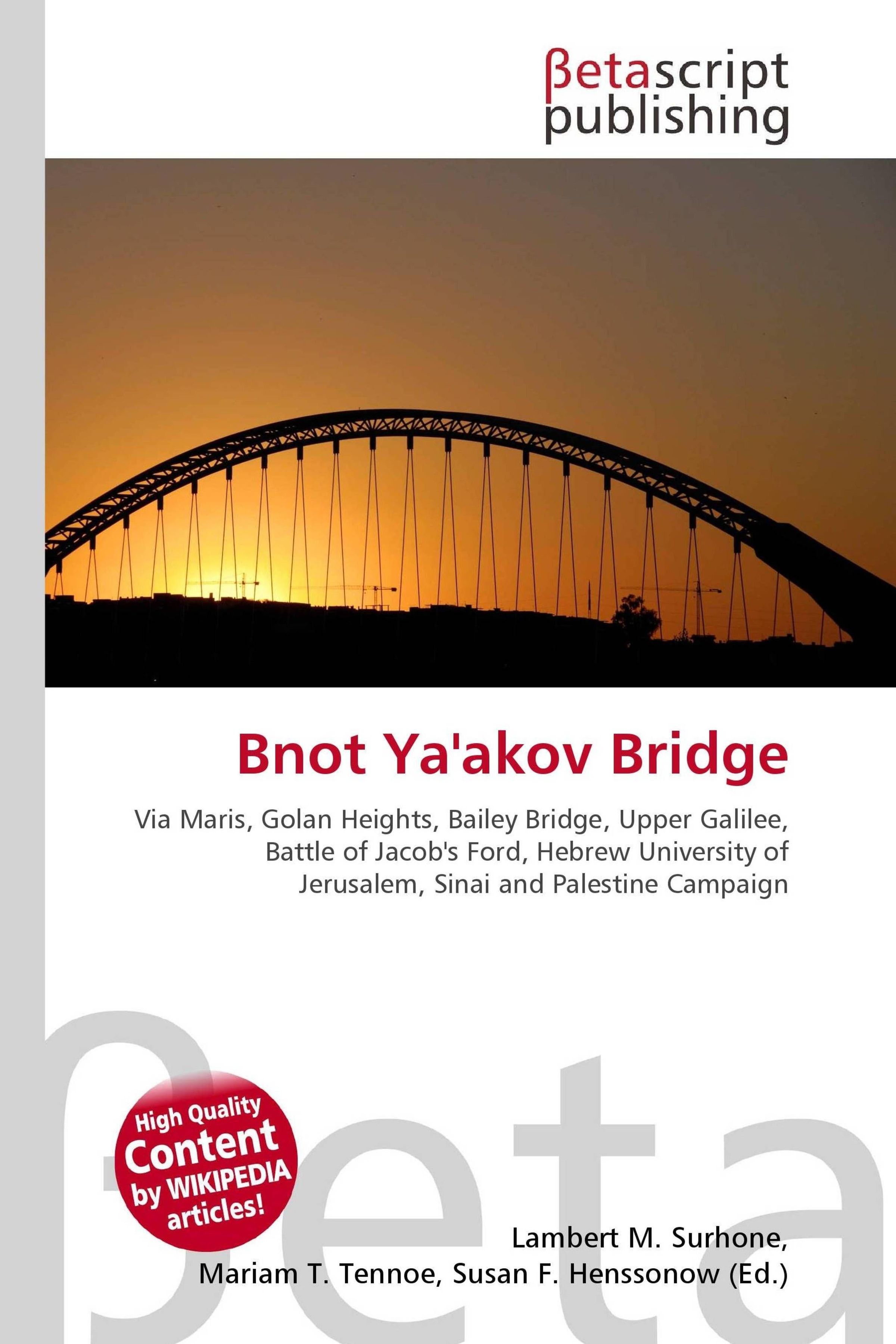 Please note that the content of this book primarily consists of articles available from Wikipedia or other free sources online. Bnot Ya'akov Bridge (Hebrew: ,Gesher Bnot Ya'akov; Arabic: , Jisr Banât Ya'qb, lit. Crossing of Jacob's Daughters) is a bridge across the Jordan River on Highway 91 in northern Israel. The area around the bridge was settled in antiquity, and a river crossing there, known as Jacob's Ford, served as part of the regional route between central Israel and Syria, along the ancient Via Maris. Archaeological remains at the site analyzed by archaeologists from the Hebrew University of Jerusalem, Germany and the United States, found that Lower Paleolithic ancestors living on the lake shore produced stone tools, butchered animals, gathered plant food and controlled fire as early as 790, 000 years ago.