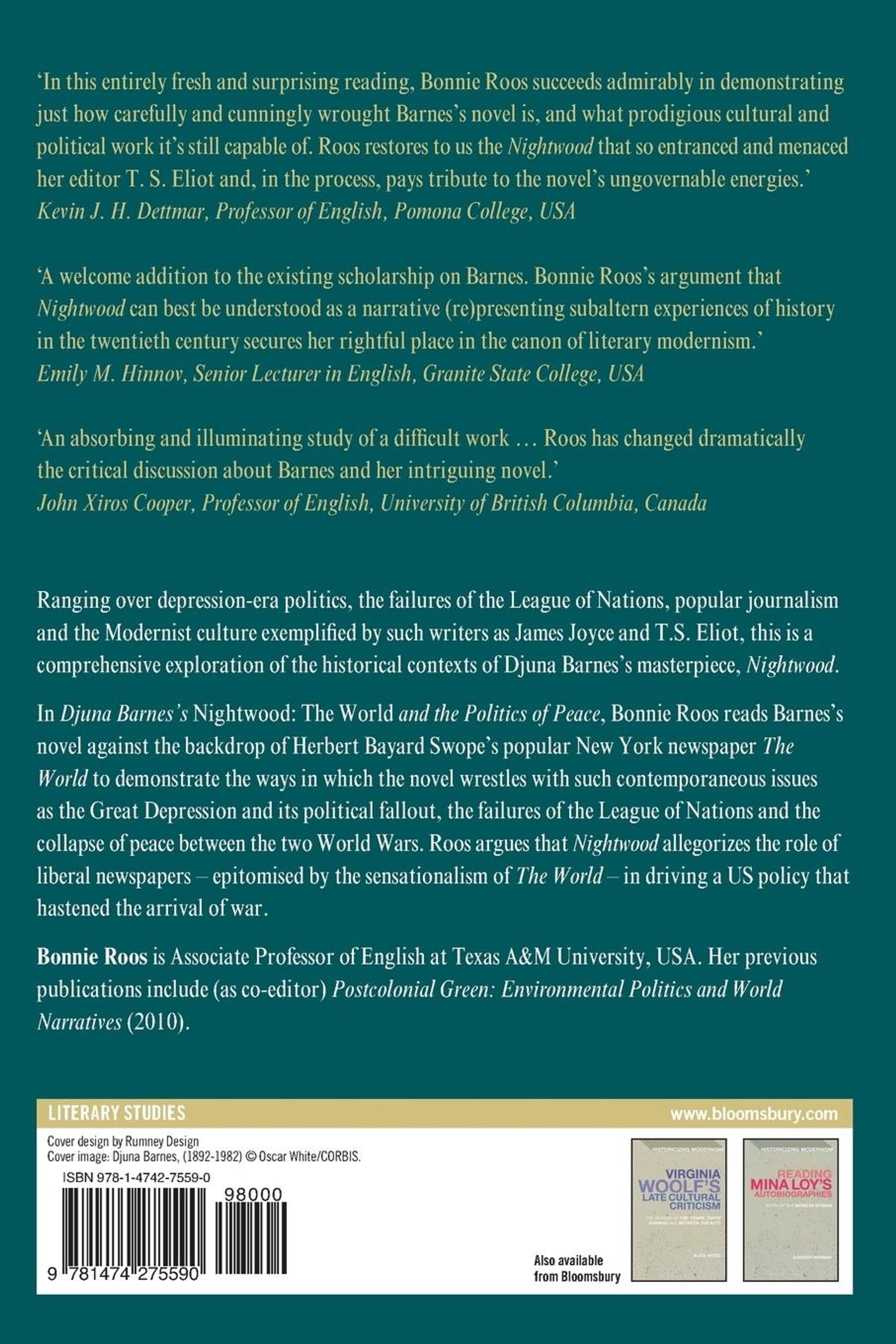 In Djuna Barnes's Nightwood: 'The World' and the Politics of Peace , Bonnie Roos reads Barnes's novel against the backdrop of Herbert Bayard Swope's popular New York newspaper The World to demonstrate the ways in which the novel wrestles with such contemporaneous issues as the Great Depression and its political fallout, the failures of the League of Nations and the collapse of peace between the two World Wars. Roos argues that Nightwood allegorizes the role of liberal newspapers - epitomised by the sensationalism of The World - in driving a US policy that hastened the arrival of war.