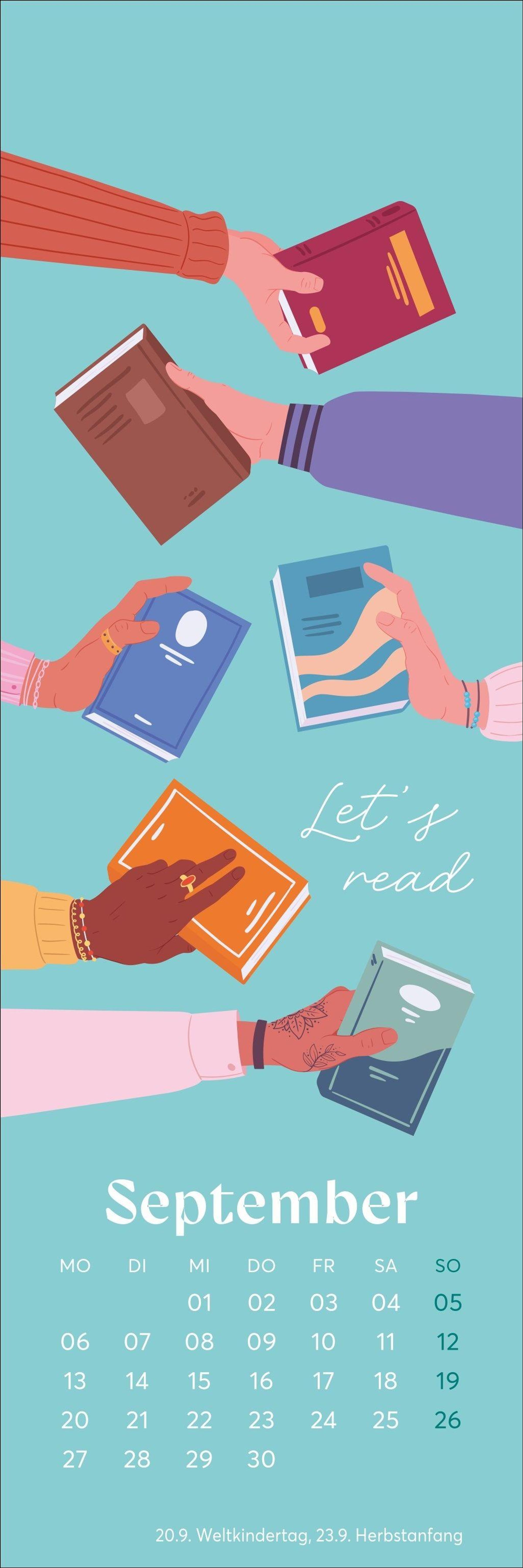 Die kleine Aufmerksamkeit für zwischendurch: Kalender und Lesezeichen in einem im Format 6 x 18 cm für alle mit SuB, WuLi und Book-Boyfriend