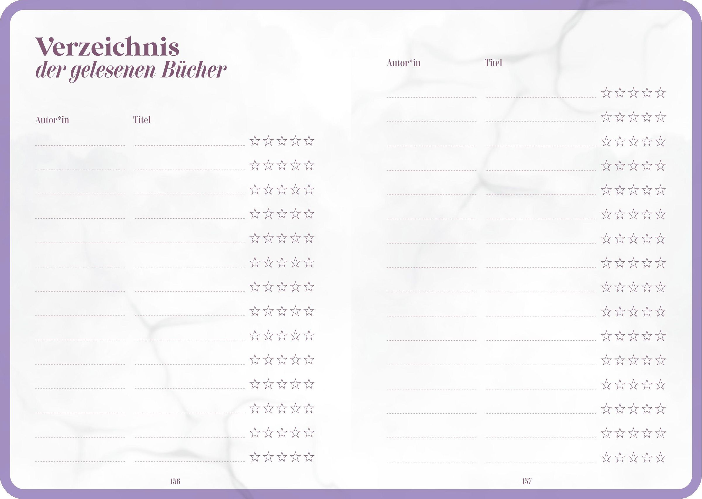 Platz für 60 Bücher: Leseeindrücke, Gefühle und Sternebewertungen reflektieren und konservieren Mit zahlreichen Trackern, Listen, Statistiken, Reading Challenges und Platz für Moodboards Eintragen, Reflektieren und Gestalten: Lass deiner Kreativität freien Lauf oder nutze die beigelegten Sticker, um deine Lieblingsbücher in Szene zu setzen! Digitale Story-Templates im passenden Design zum Gratis-Download: Teile deine Must-Read-Empfehlungen online mit deinen Bookbesties oder deiner Community!
