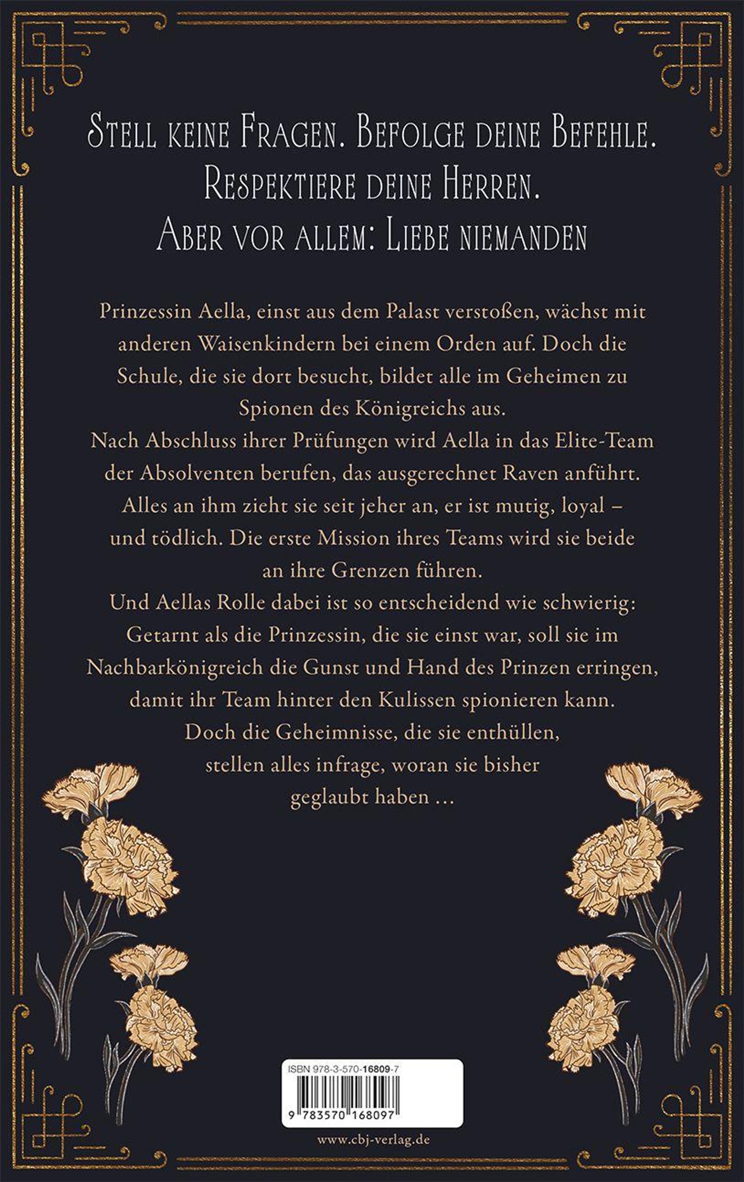 Prinzessin Aella, einst aus dem Palast verstoßen, wächst mit anderen Waisenkindern bei einem Orden auf. Doch die Schule, die sie dort besucht, bildet alle im Geheimen zu Spionen des Königreichs aus. Nach Abschluss ihrer Prüfungen wird Aella in das Elite-Team der Absolventen berufen, das ausgerechnet Raven anführt. Alles an ihm zieht sie seit jeher an, er ist mutig, loyal - und tödlich. Die erste Mission ihres Teams wird sie beide an ihre Grenzen führen. Und Alleas Rolle dabei ist so entscheidend wie schwierig: Getarnt als die Prinzessin, die sie einst war, soll sie im Nachbarkönigreich die Gunst und Hand des Prinzen erringen, damit ihr Team hinter den Kulissen spionieren kann. Doch die Geheimnisse, die sie enthüllen, stellen alles infrage, woran sie bisher geglaubt haben ...