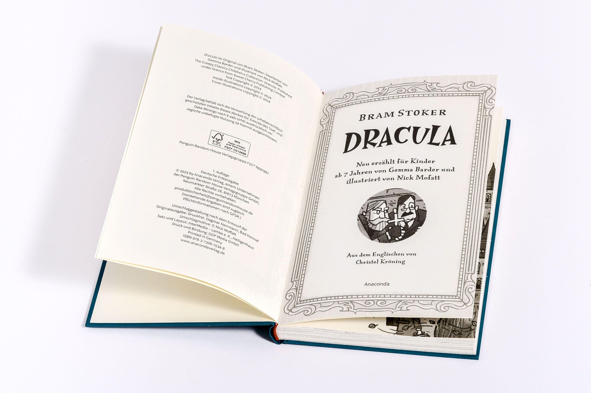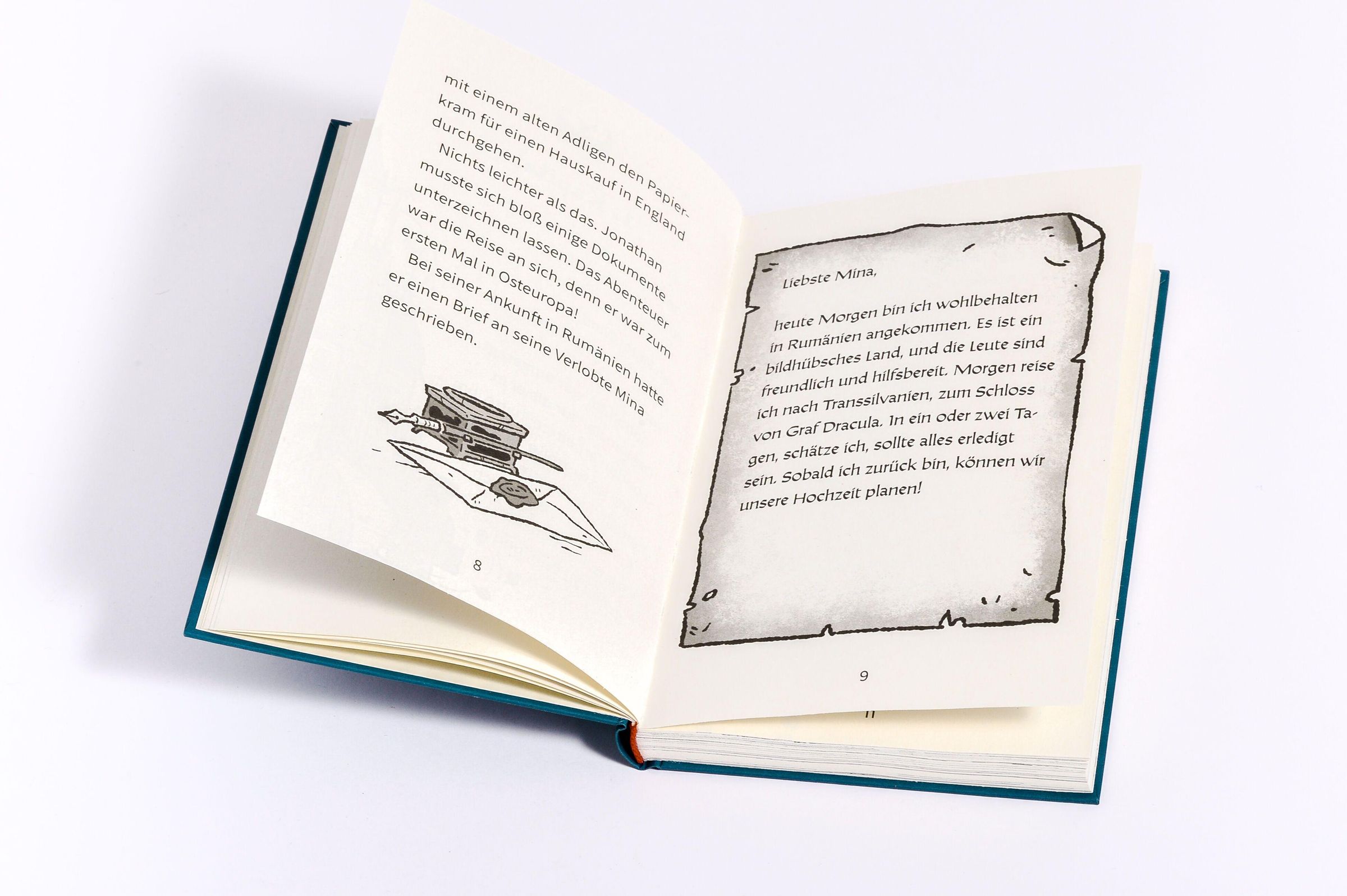 Auf der schaurigen Burg in Transsilvanien kann einem schon unheimlich werden. Und der Graf mit den spitzen Zähnen guckt so seltsam, wenn er Blut sieht. Rechtsanwalt Jonathan Harker, sein Gast, will nur schnell wieder weg. Aber Graf Dracula hat einen teuflischen Plan, und vielen Menschen droht Unheil. Diese berühmte Vampirgeschichte ist mit Zeichnungen versehen und so nacherzählt, dass sich junge Menschen beim Lesen angenehm gruseln können.