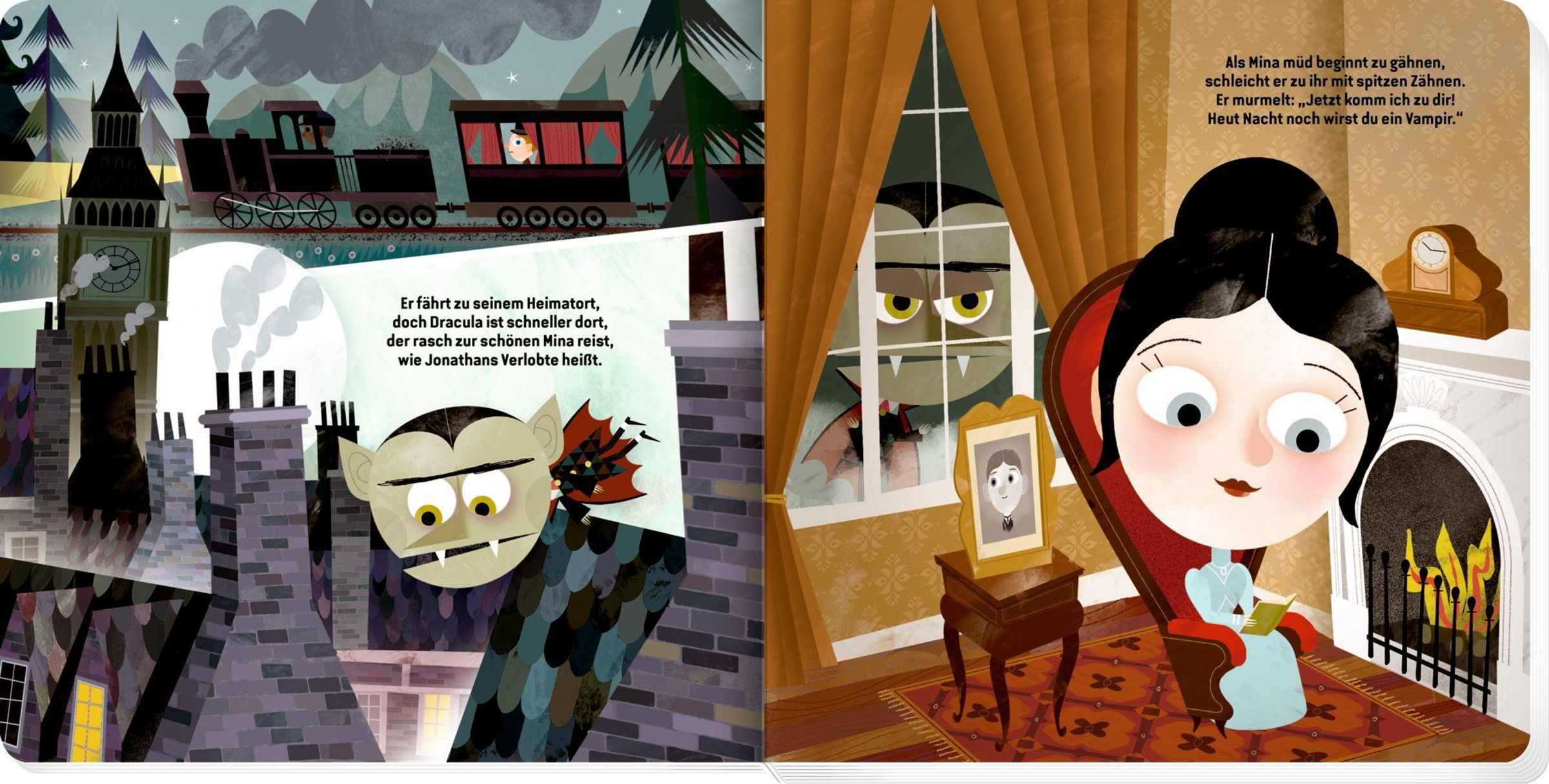 In diesem hochwertigen Pappbilderbuch wird die fantastische Geschichte von Graf Dracula, den berühmtesten Vampir der Weltliteratur, altersgerecht schon für die Kleinsten erzählt. Die künstlerischen Illustrationen und der kongeniale, gereimte Text laden Eltern und Kinder zum Entdecken dieses Klassikers ein!