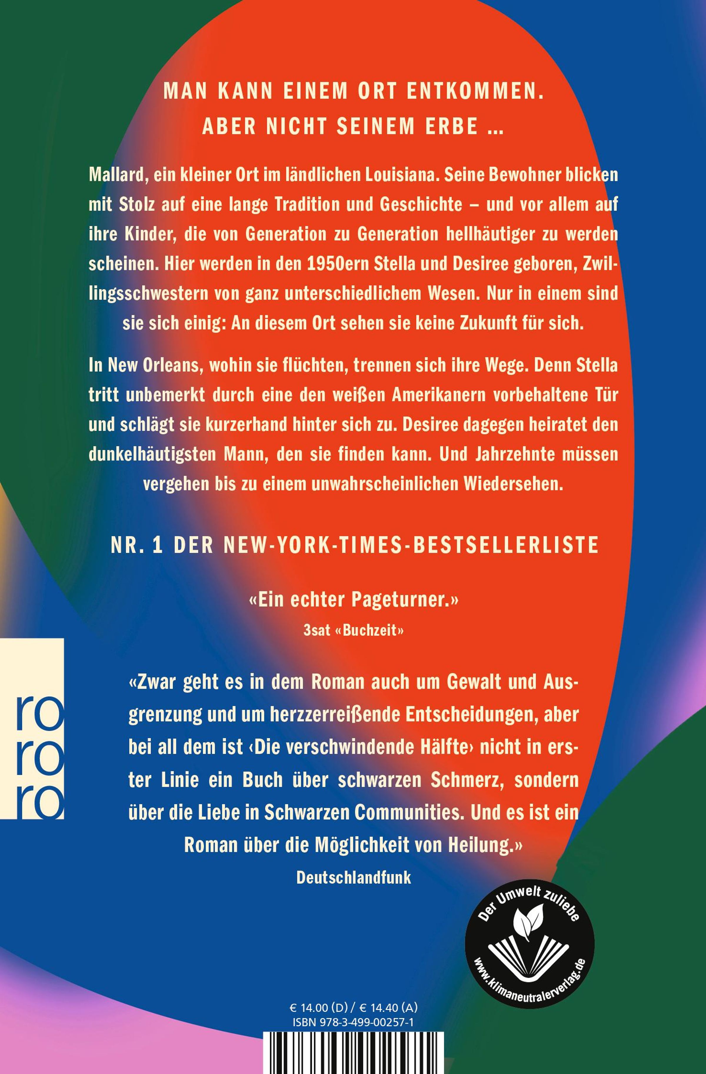 Mallard, ein kleiner Ort in Louisiana. Seine Bewohner blicken mit Stolz auf eine lange Tradition und Geschichte - und vor allem auf ihre Kinder, die mit jeder Generation hellhäutiger zu werden scheinen. Hier werden in den 1950ern Stella und Desiree geboren, Zwillinge von ganz unterschiedlichem Wesen. Nur in einem sind sie sich einig: An diesem Ort sehen sie keine Zukunft. In New Orleans, wohin sie flüchten, trennen sich ihre Wege. Denn Stella tritt unbemerkt durch eine den weißen Amerikanern vorbehaltene Tür und schlägt sie kurzerhand hinter sich zu. Desiree dagegen heiratet den dunkelhäutigsten Mann, den sie finden kann. Und Jahrzehnte vergehen bis zu einem unwahrscheinlichen Wiedersehen.