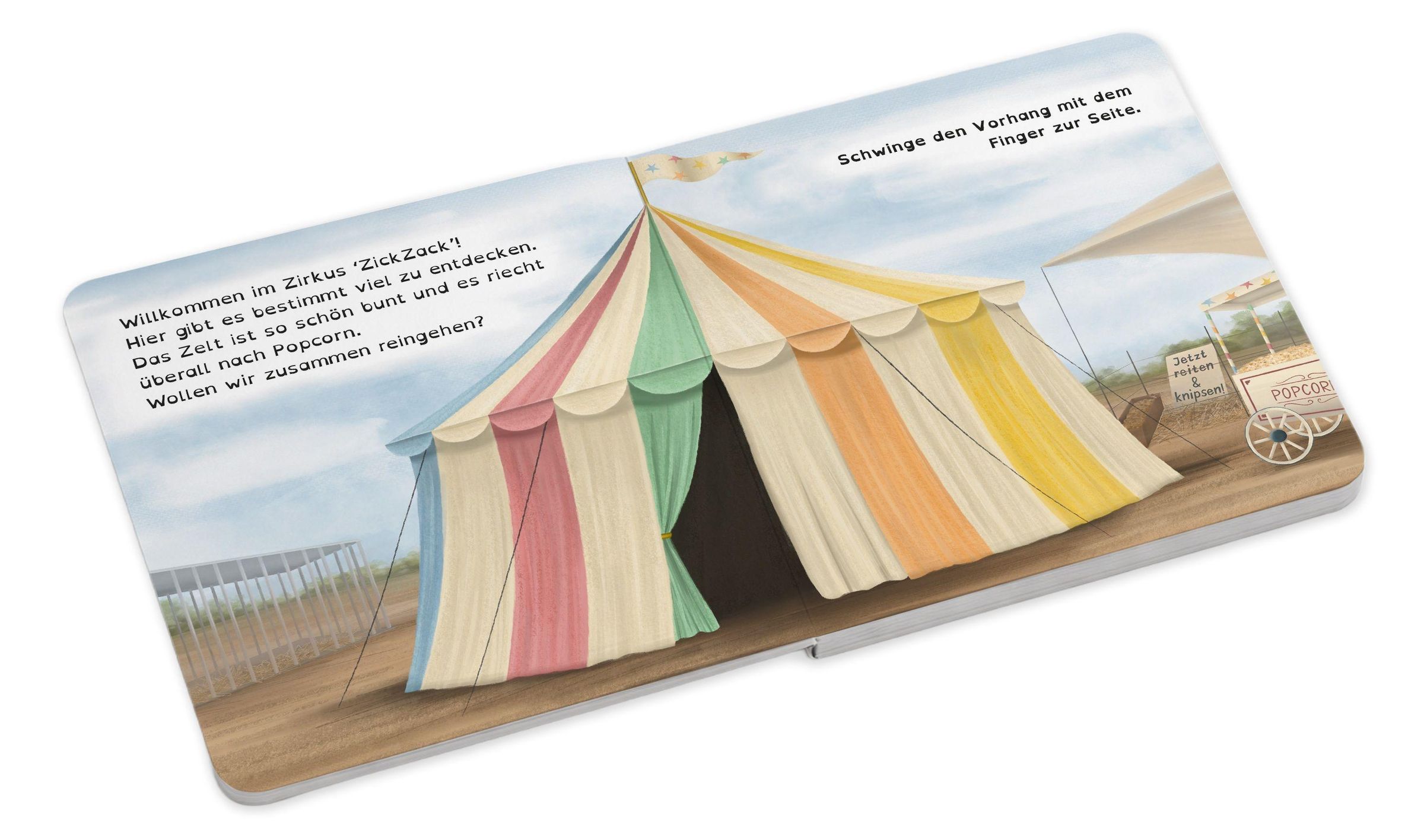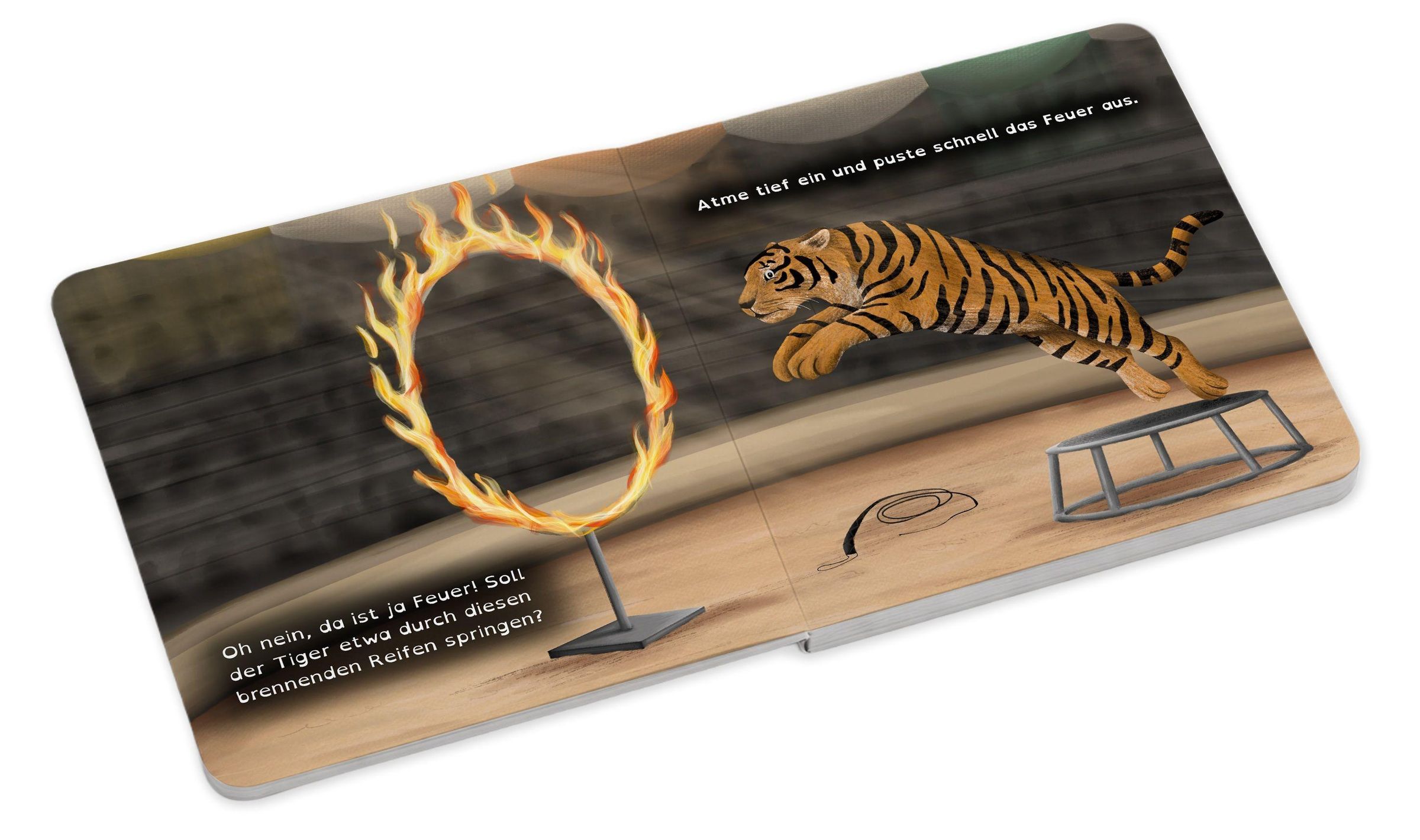 Text: „Komm, wir retten die Zirkustiere. Ein Mitmachbuch. Britta Kiwit, Nicole Eckert-Kohout.“ Ein buntes Zelt mit Elefant., Buch