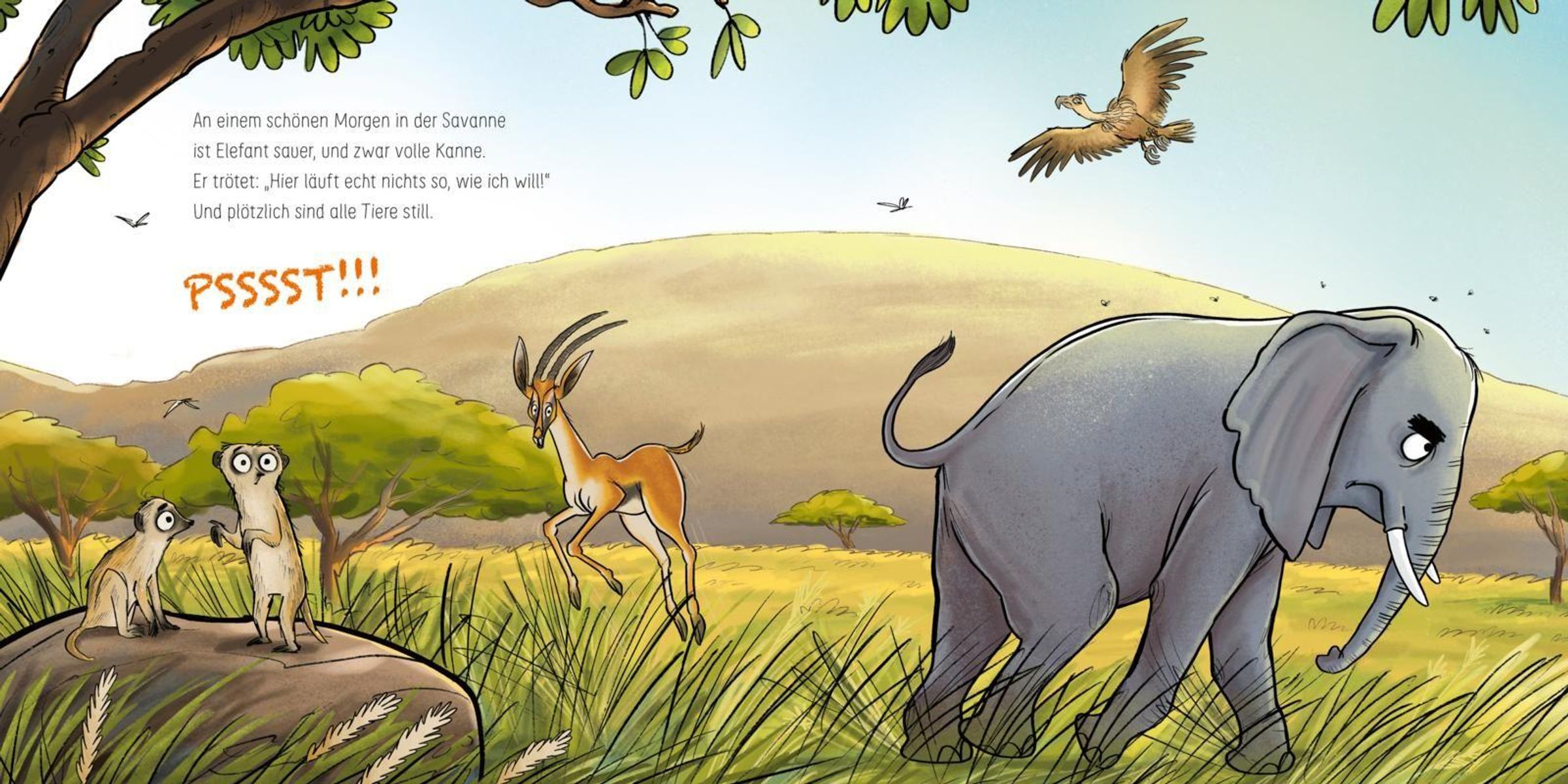 In der Savanne herrscht dicke Luft! Elefant ist superschlecht drauf. Weil er abends zu früh schlafen soll, weil er keine Lust hat, am Wasserloch anzustehen, und überhaupt: Heute ist einfach alles doof! Dass die Dinge nicht so laufen, wie er will, dafür hat Elefant kein Verständnis. Er ist schließlich das größte und stärkste Tier in der Savanne! Da müssen doch alle nach seiner Pfeife tanzen! Oder nicht?