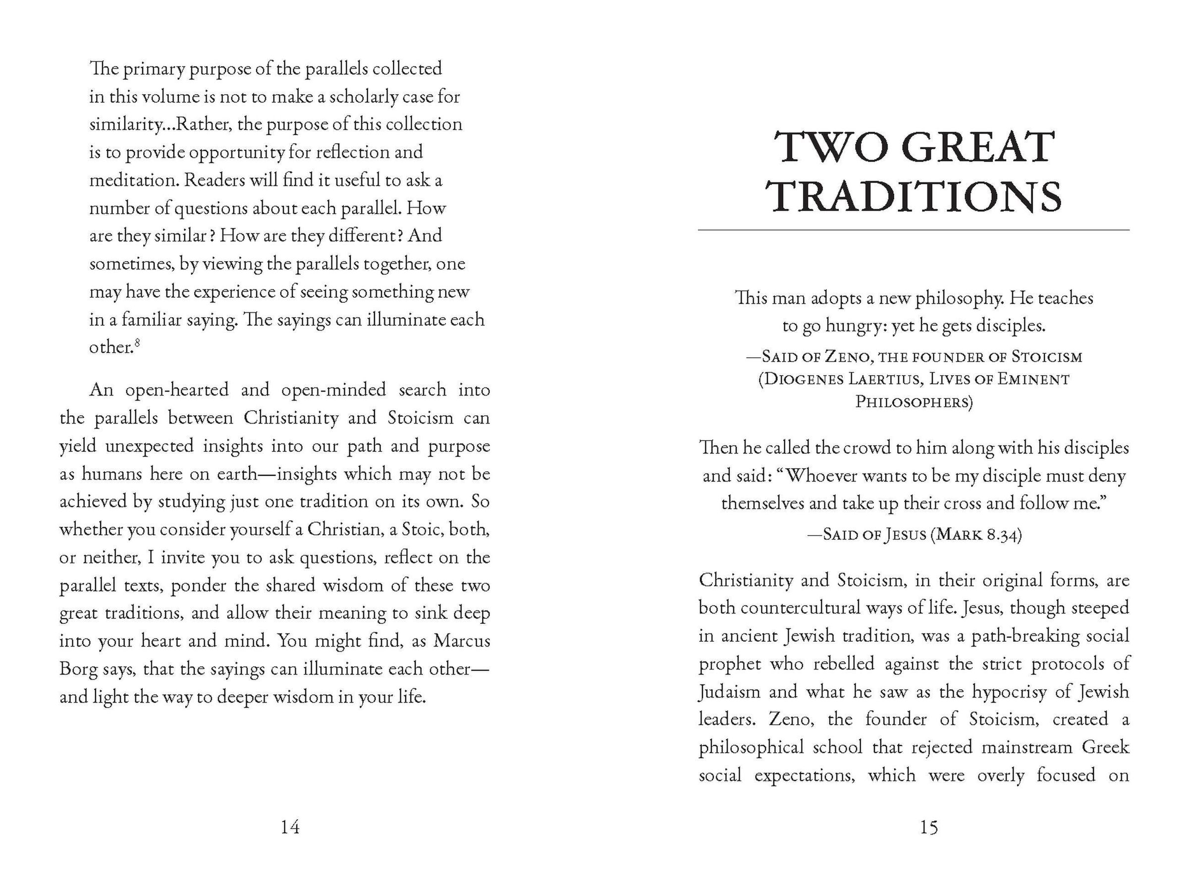 By placing ancient texts, like the New Testament gospels (Matthew, Mark, Luke, and John), Meditations by Marcus Aurelius, Discourses andHandbook by Epictetus, Moral Letters to Lucilius by Seneca, and more, in dialogue with one another, we get a double dose of the compassion, forgiveness, generosity, and love expressed by these wise and inspiring teachers. Jesus and Stoicism focuses on the shared ethics and way of life common to both traditions, including: