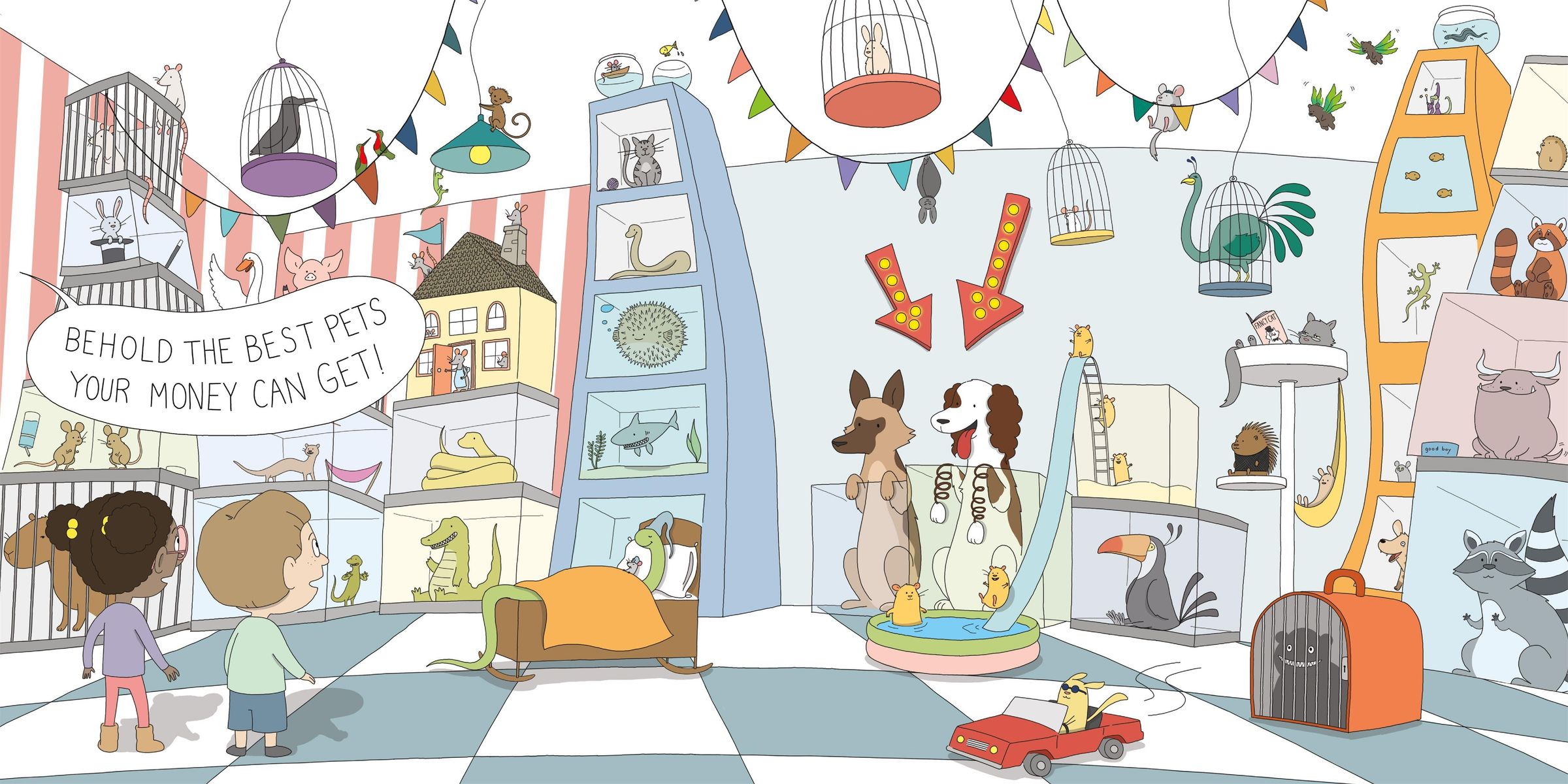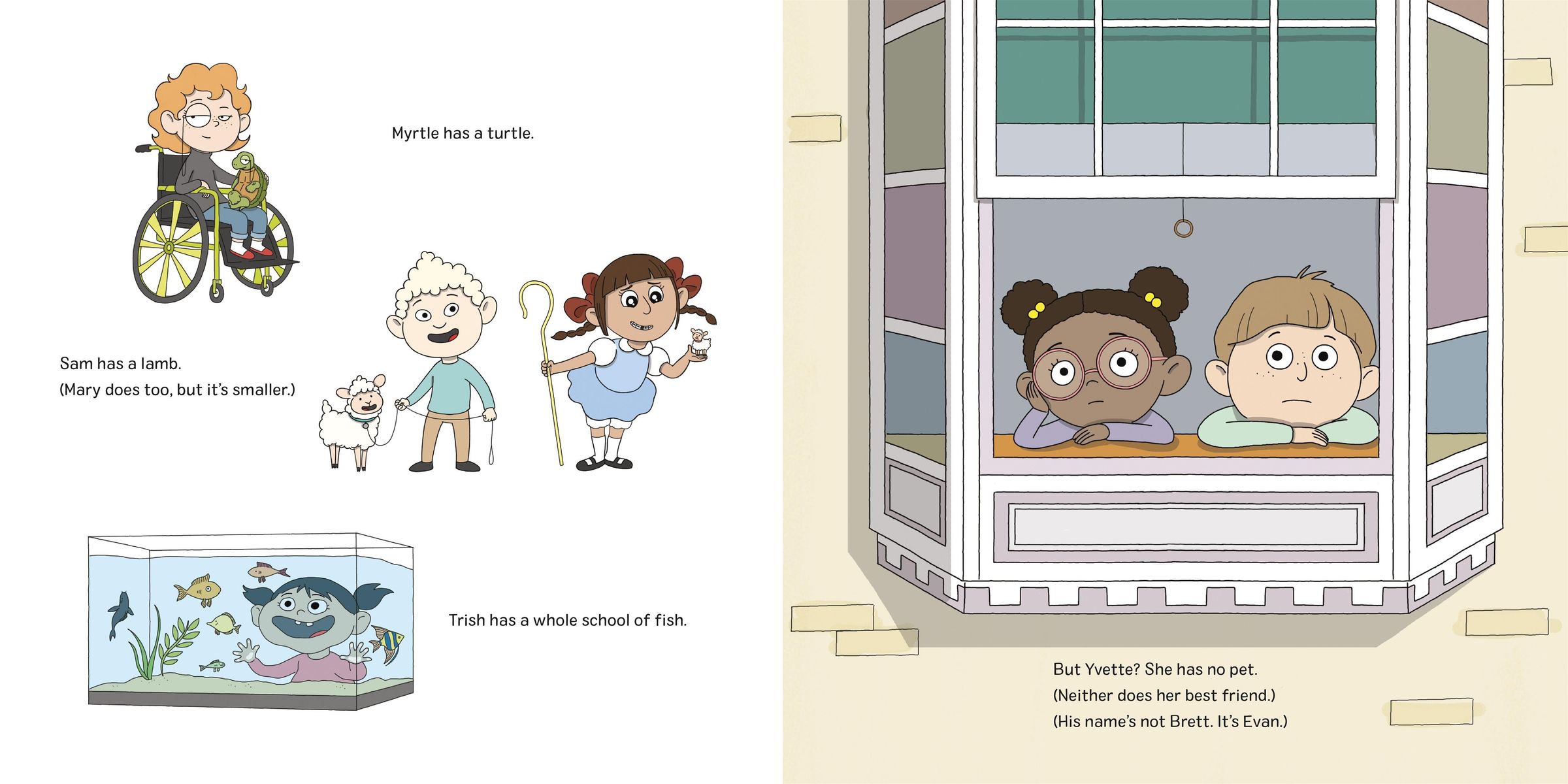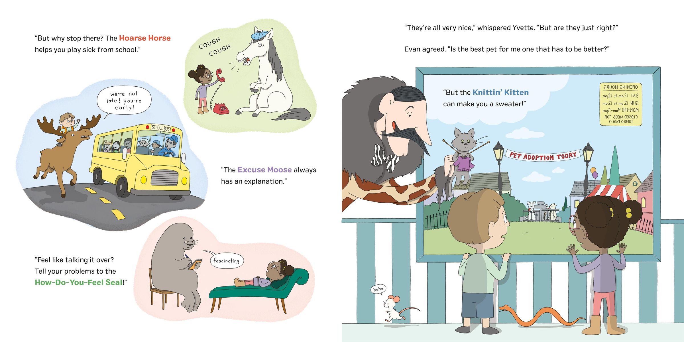 Myrtle has a turtle, Sam has a lamb, and Tony has a pony. But Yvette and Evan don't have any pets . . . until the Better Pets emporium rolls into town featuring some spectacular possibilities!