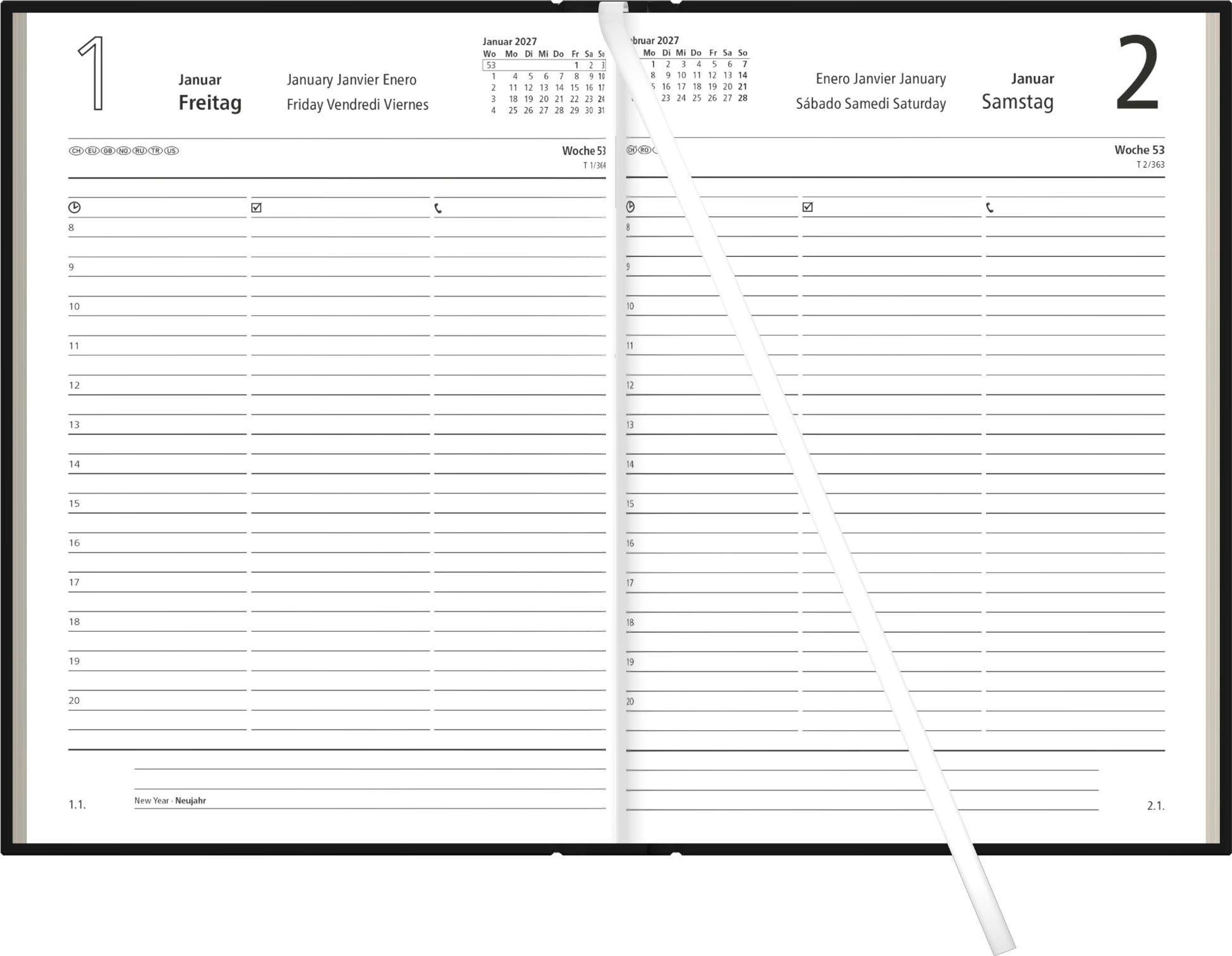 Buchkalender 1T/1S anthrazit Blauer Engel 2027