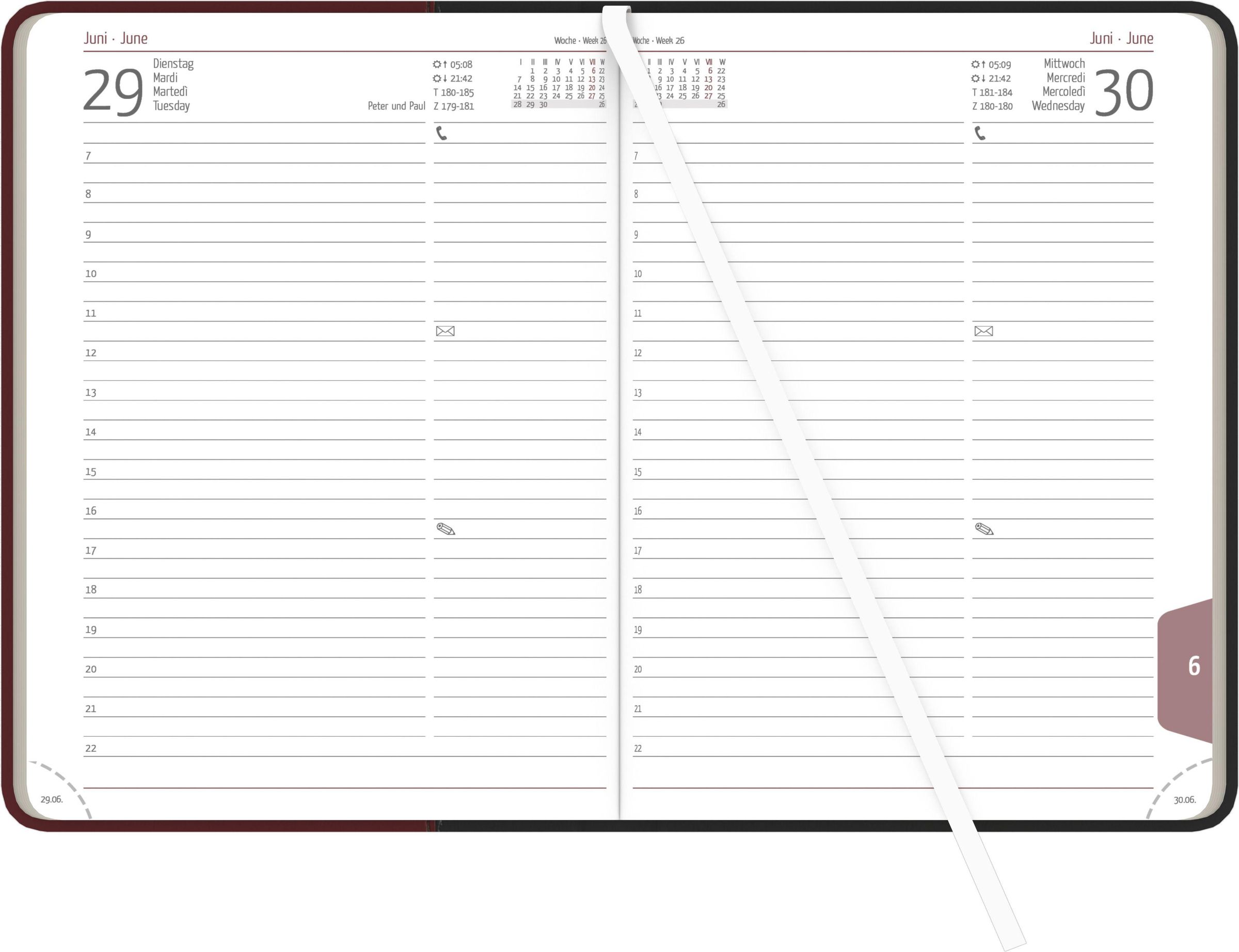 Kalendarium: 1 Tag pro Seite mit Uhrzeiteinteilung 7--22 Uhr, viersprachig (DE/FR/IT/GB)