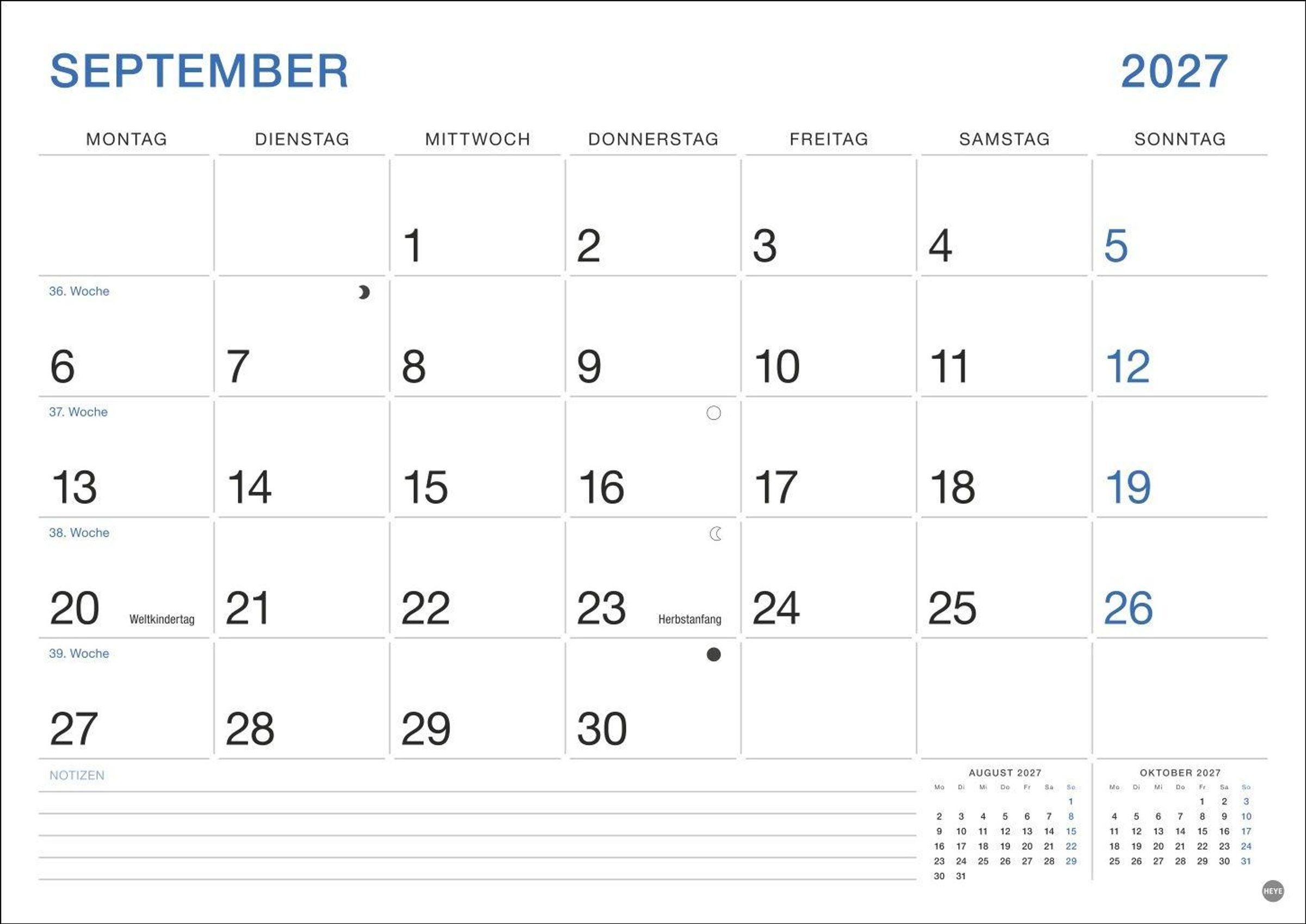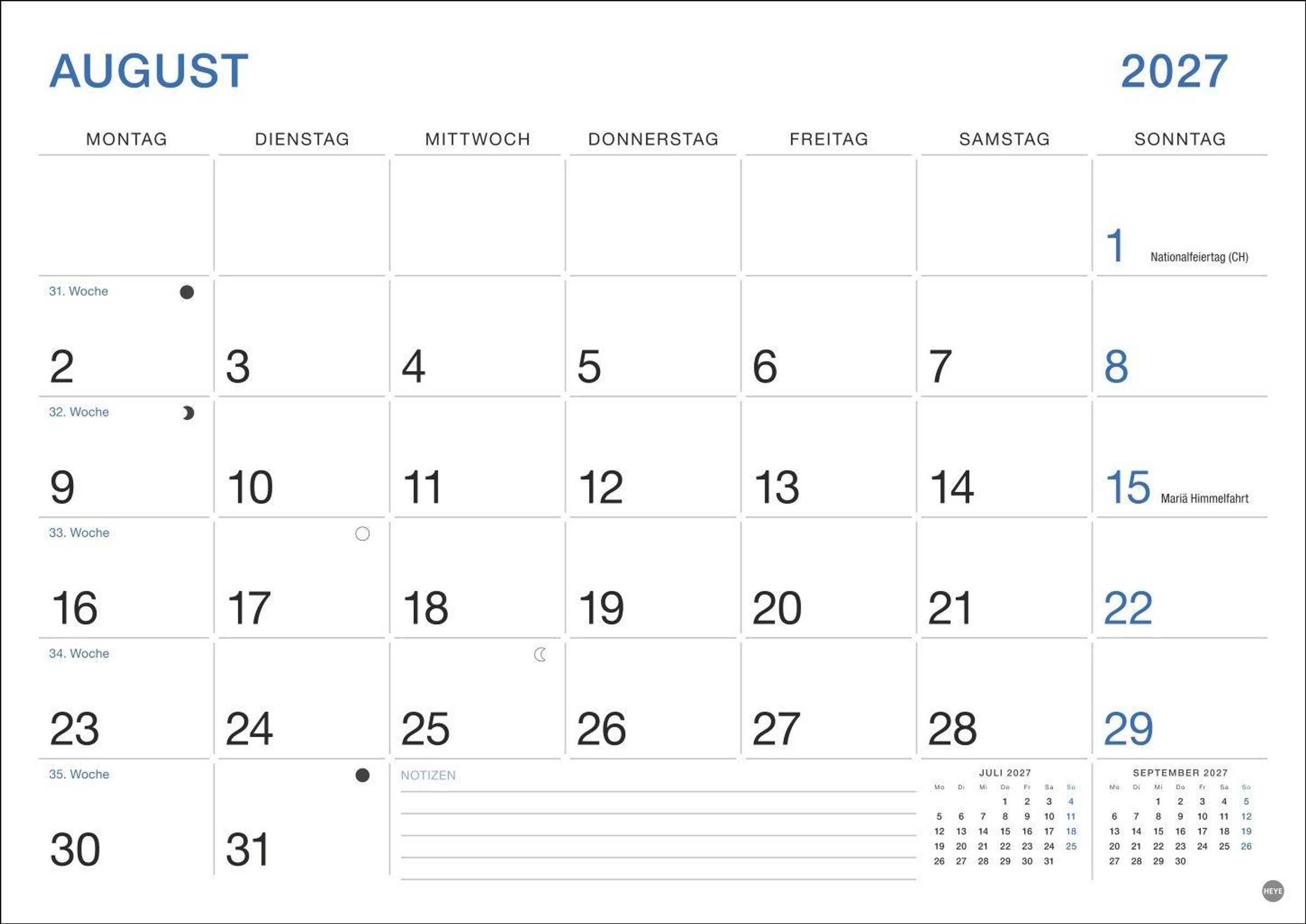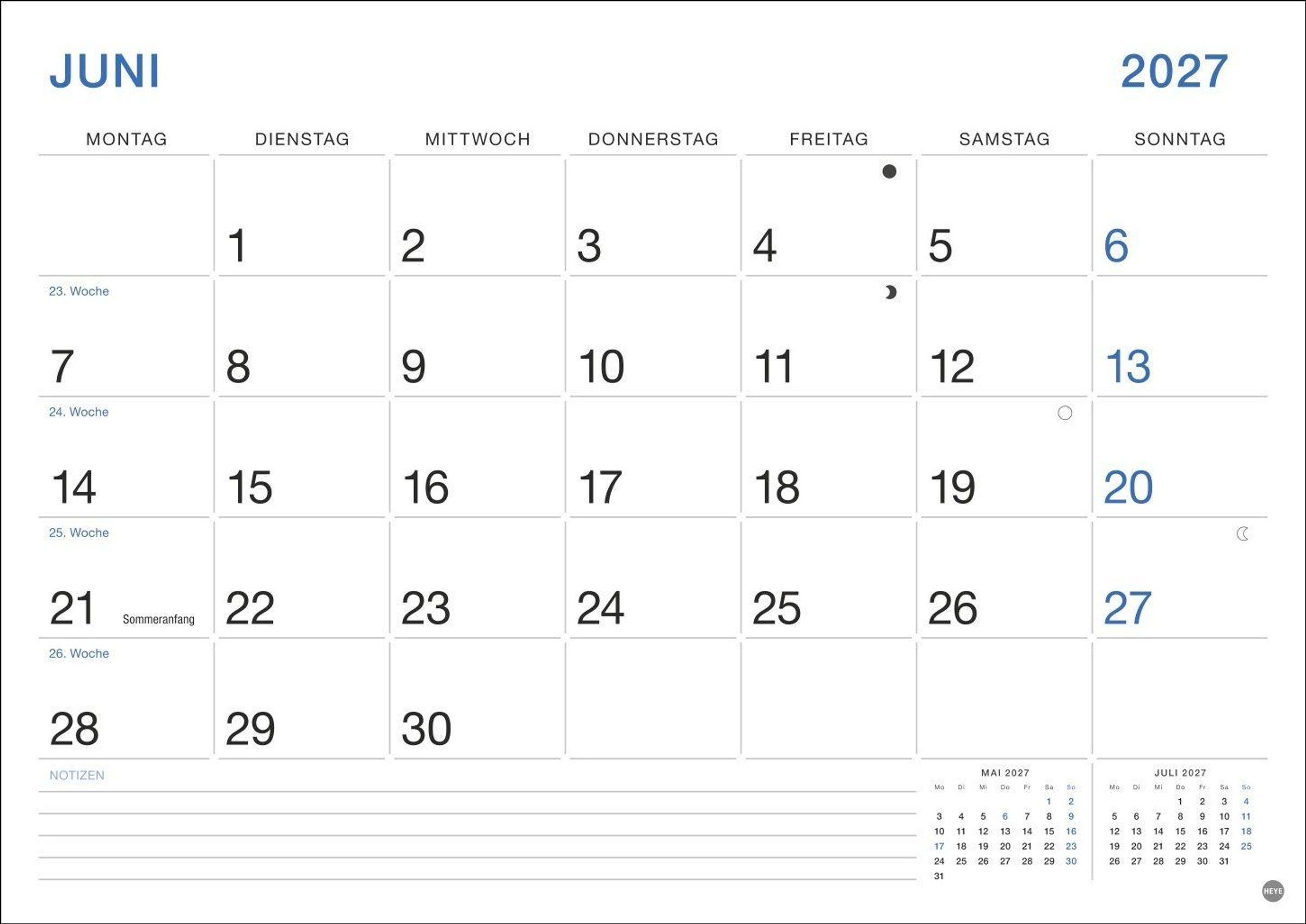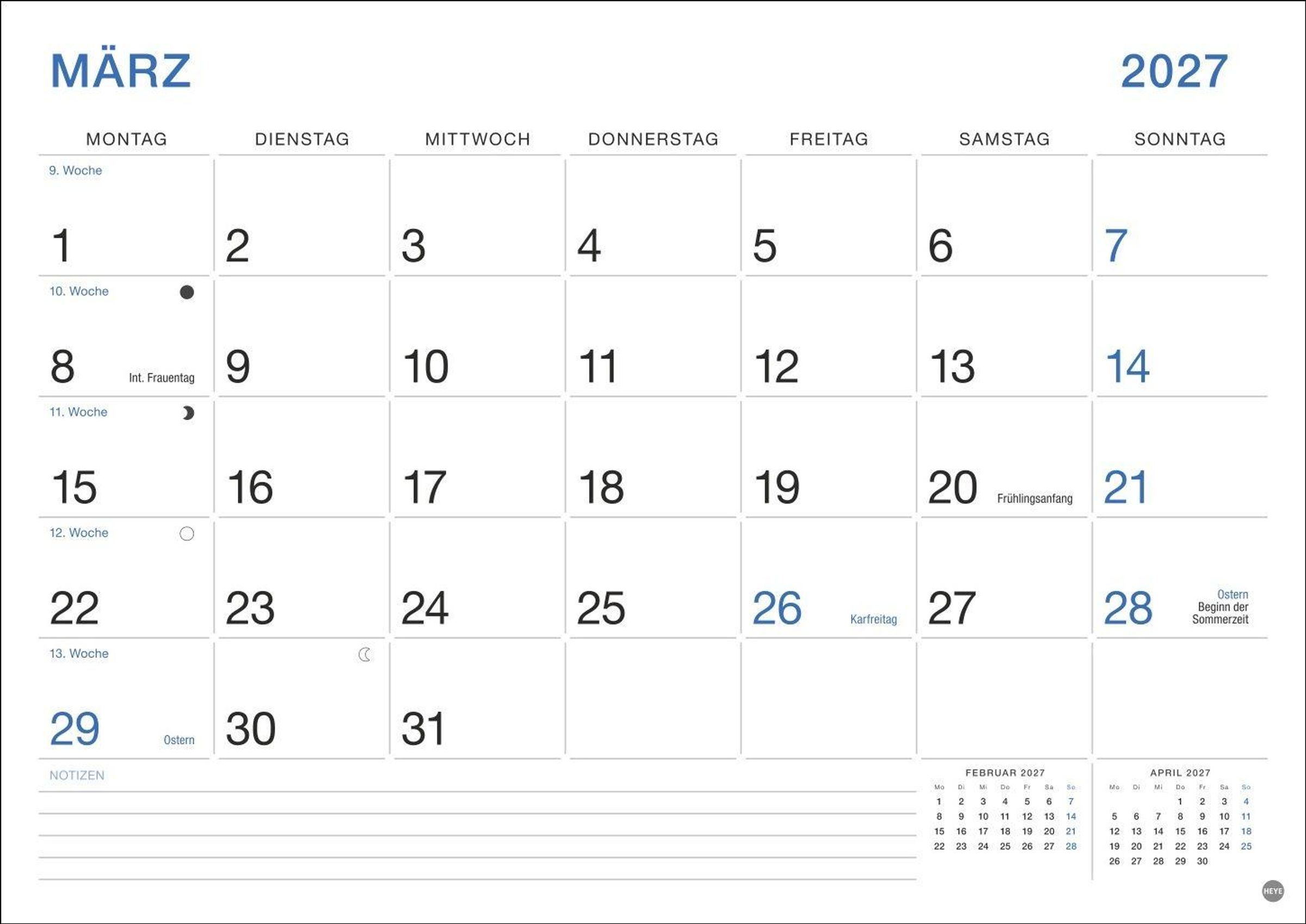 • Praktischer Wandplaner mit großer Monatsübersicht. Wandkalender DIN A4. Büro-Kalender mit Notizfeld und Schulferien.