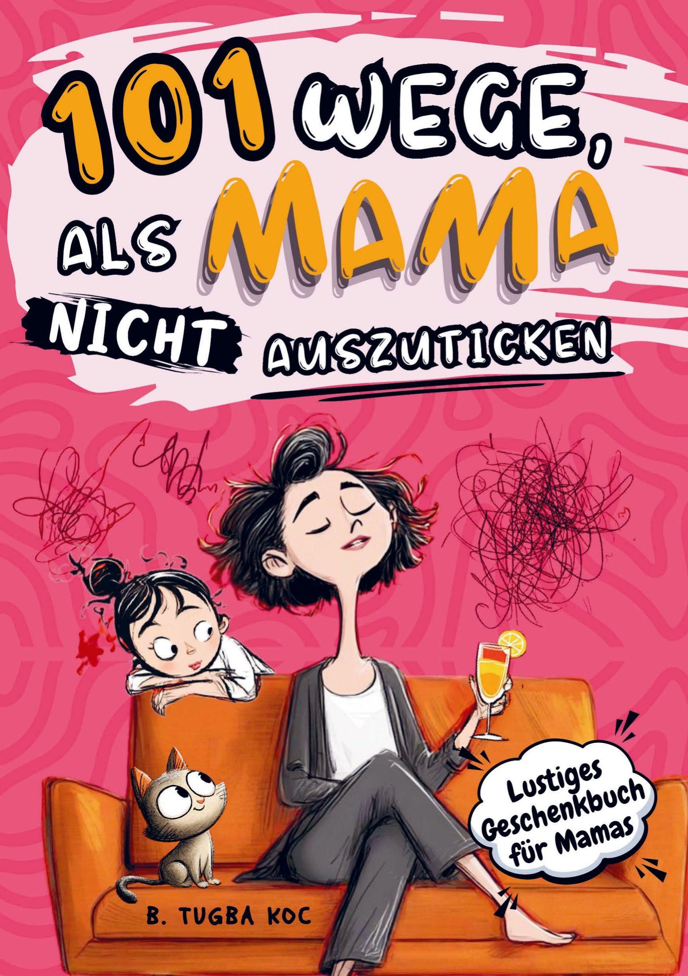 "101 Wege, als Mama nicht auszuticken. Lustiges Geschenkbuch für Mamas. Illustration: Frau, Kind, Katze auf Sofa, wirrer Hintergrund.", Buch