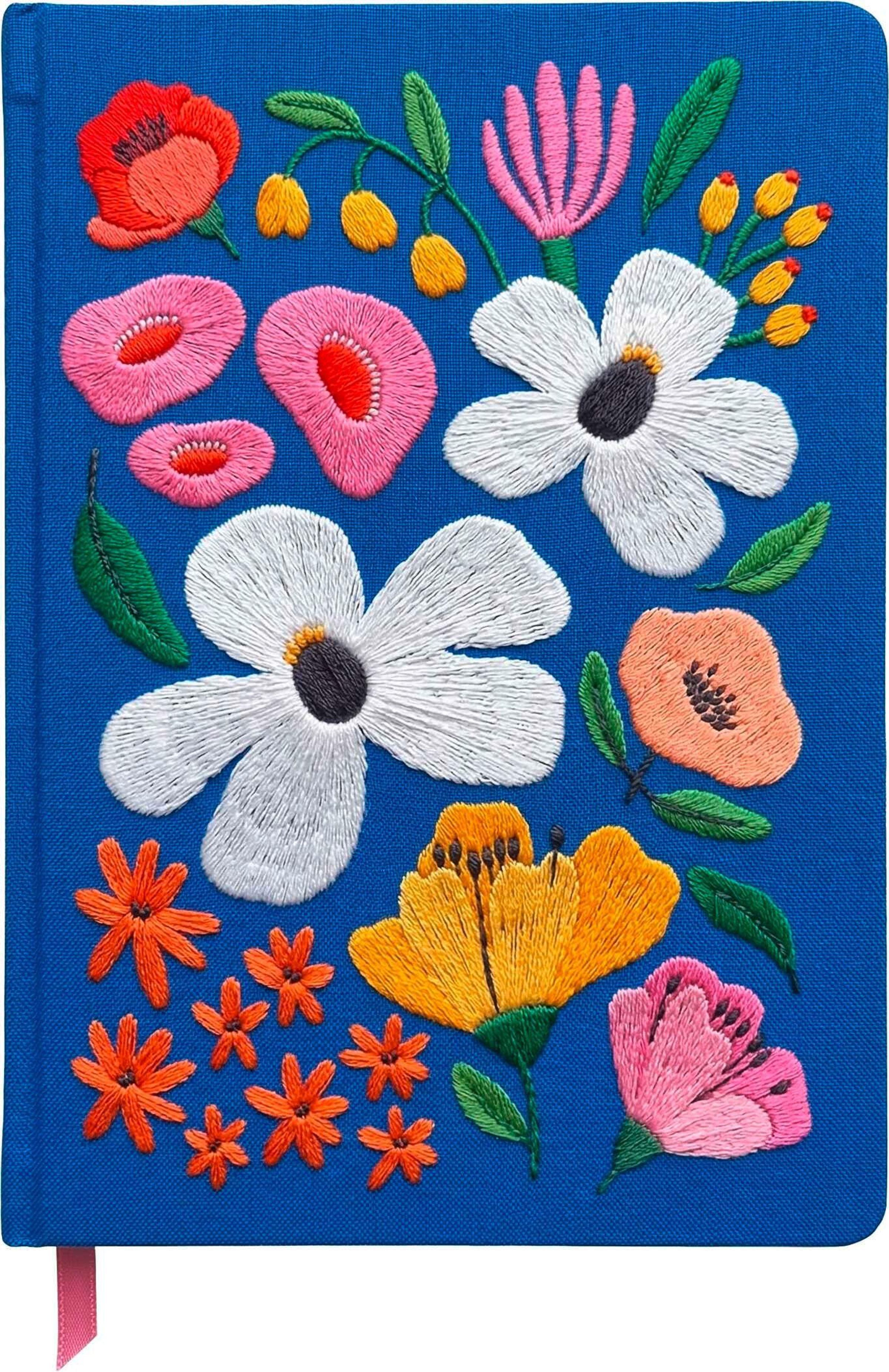 Bunte Blumengrüße Notizbuch, bestickt, A5, 120 Blätter, royalblau (Sonstige Artikel)