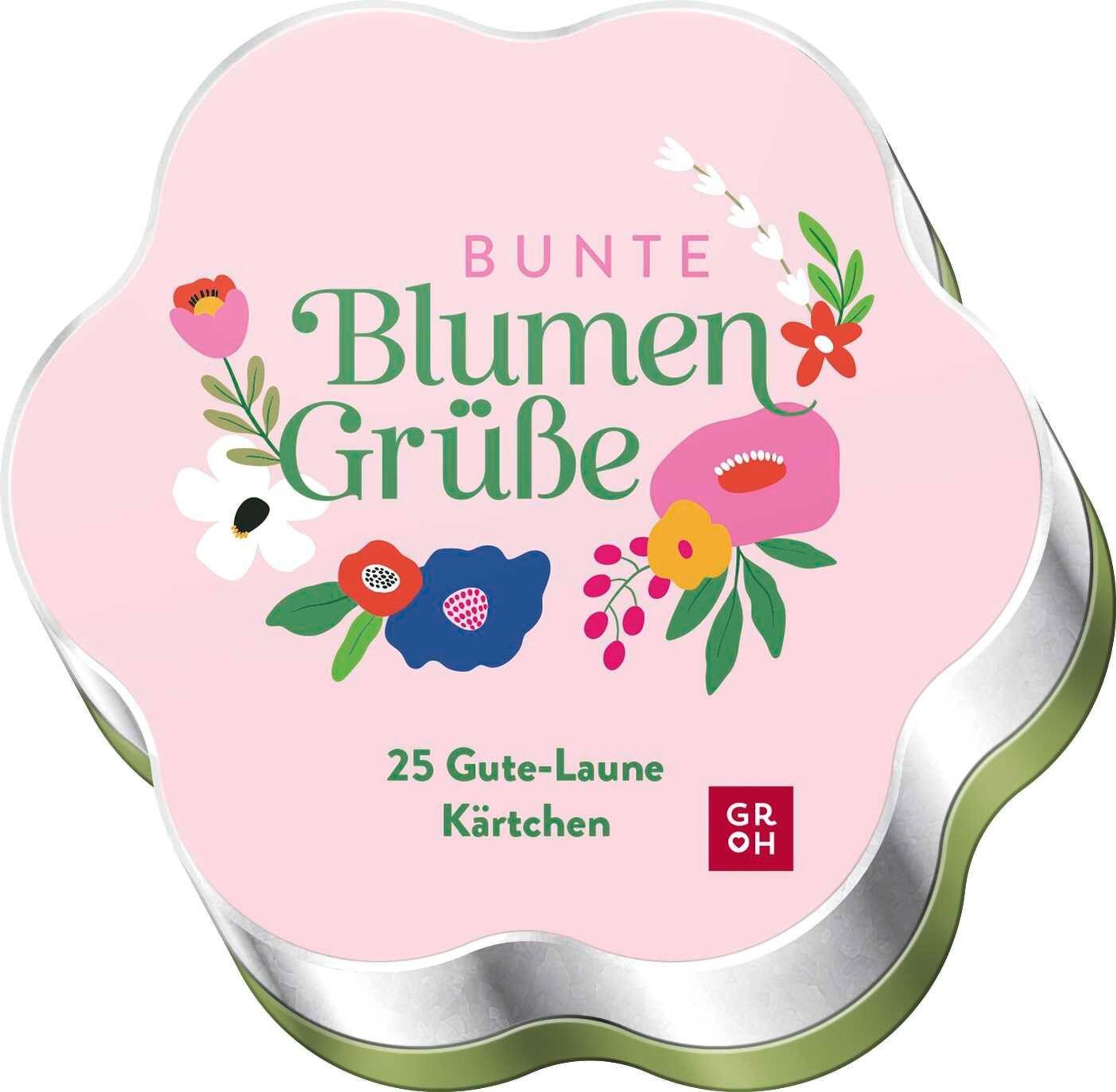 - 25 Gute-Laune-Kärtchen | Metalldose in Blüten-Form mit formgestanzten Impulskarten für Glücksmomente und ein Lächeln an jedem Tag