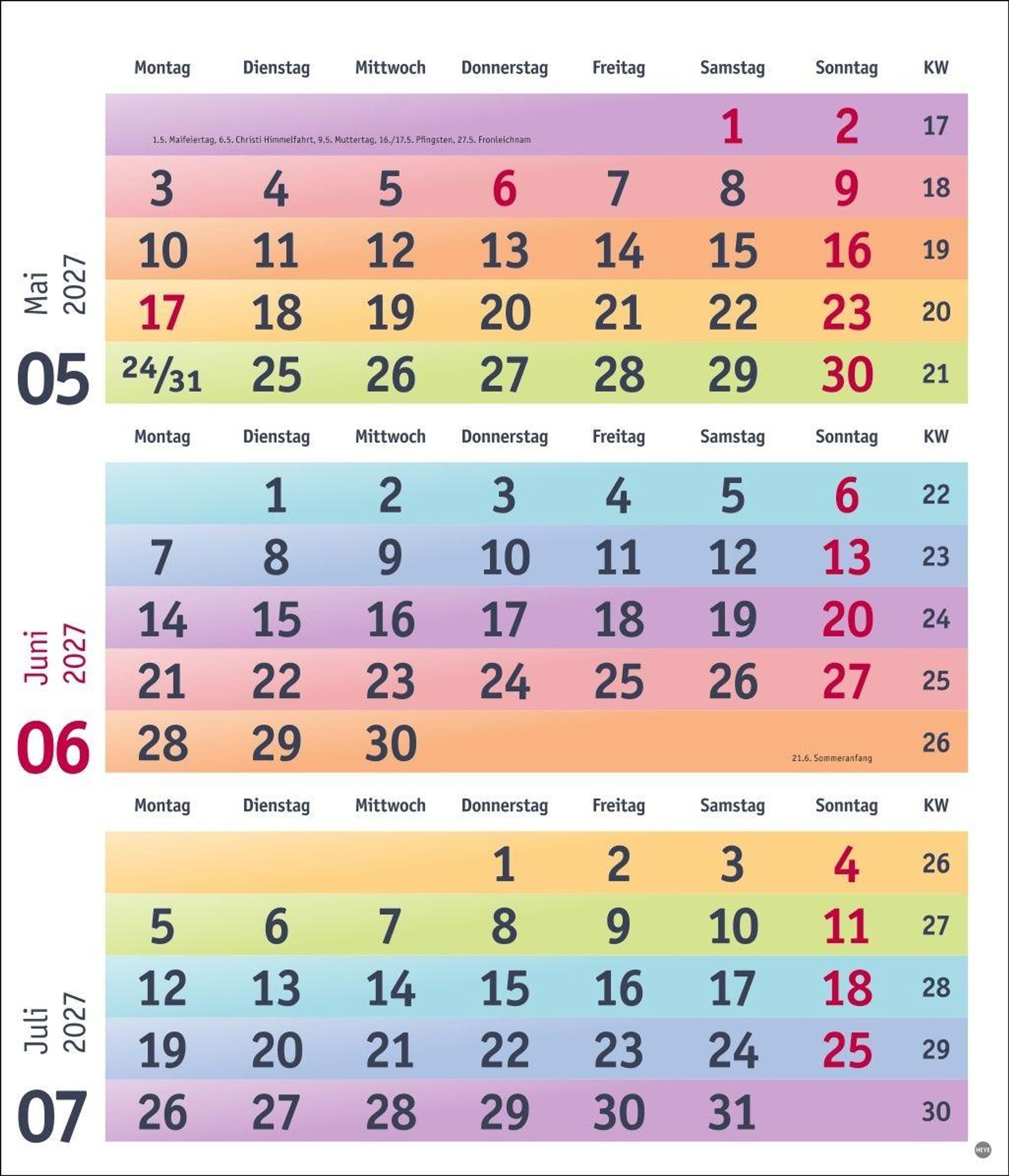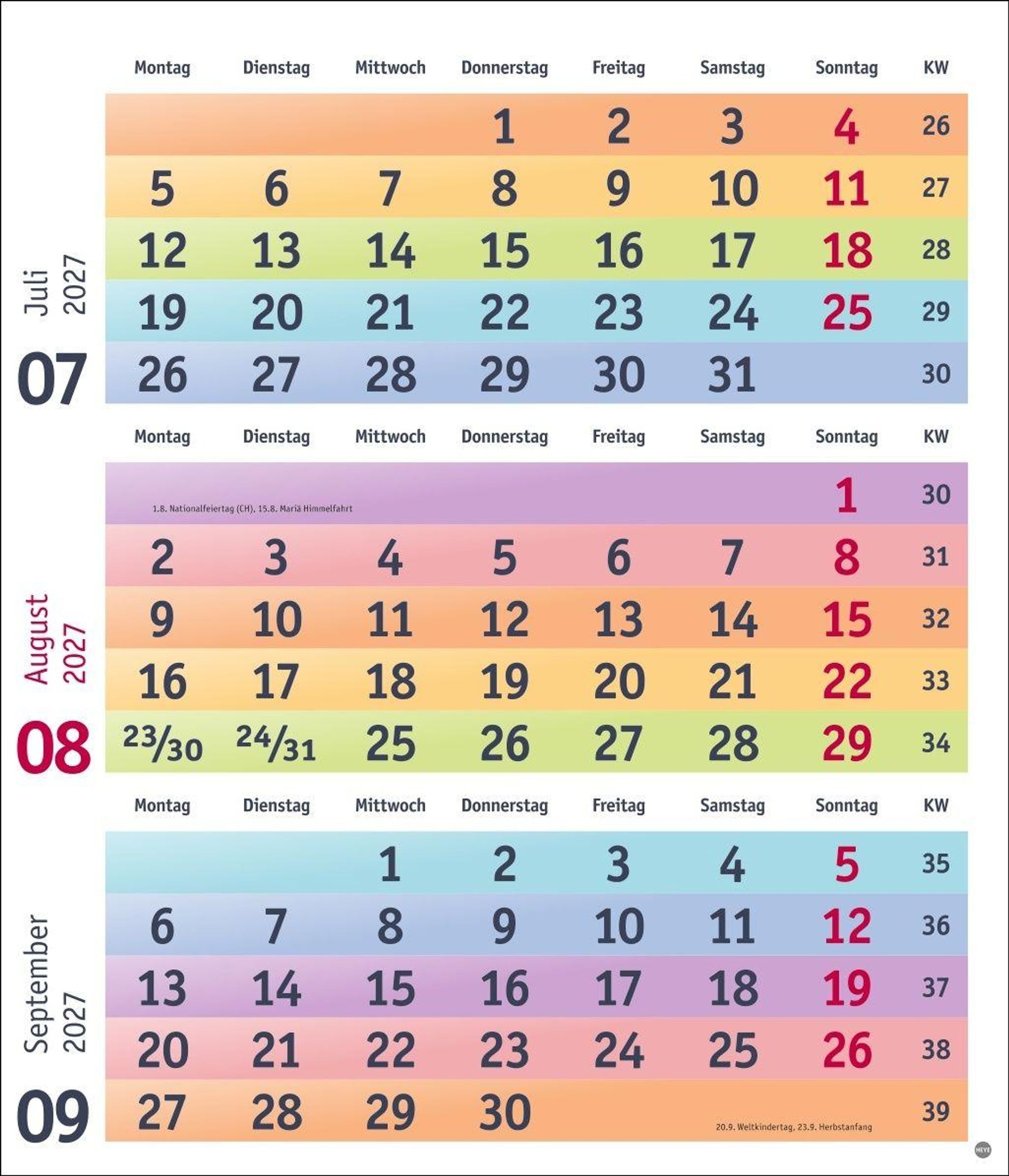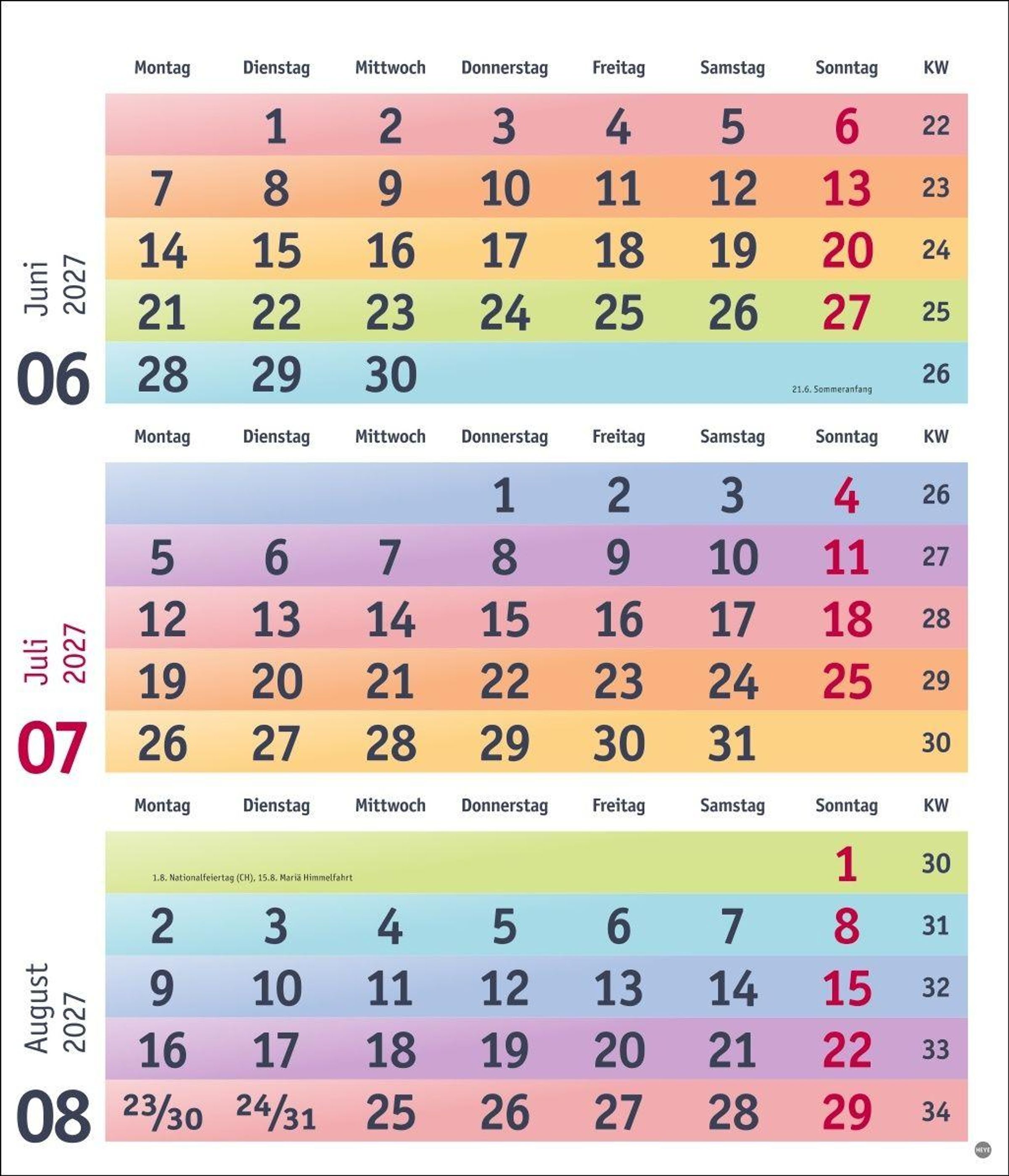 - 3-/4-Monatsplaner Kalender Heye , Bürokalender Heye , Bunte Wochen Planer Heye