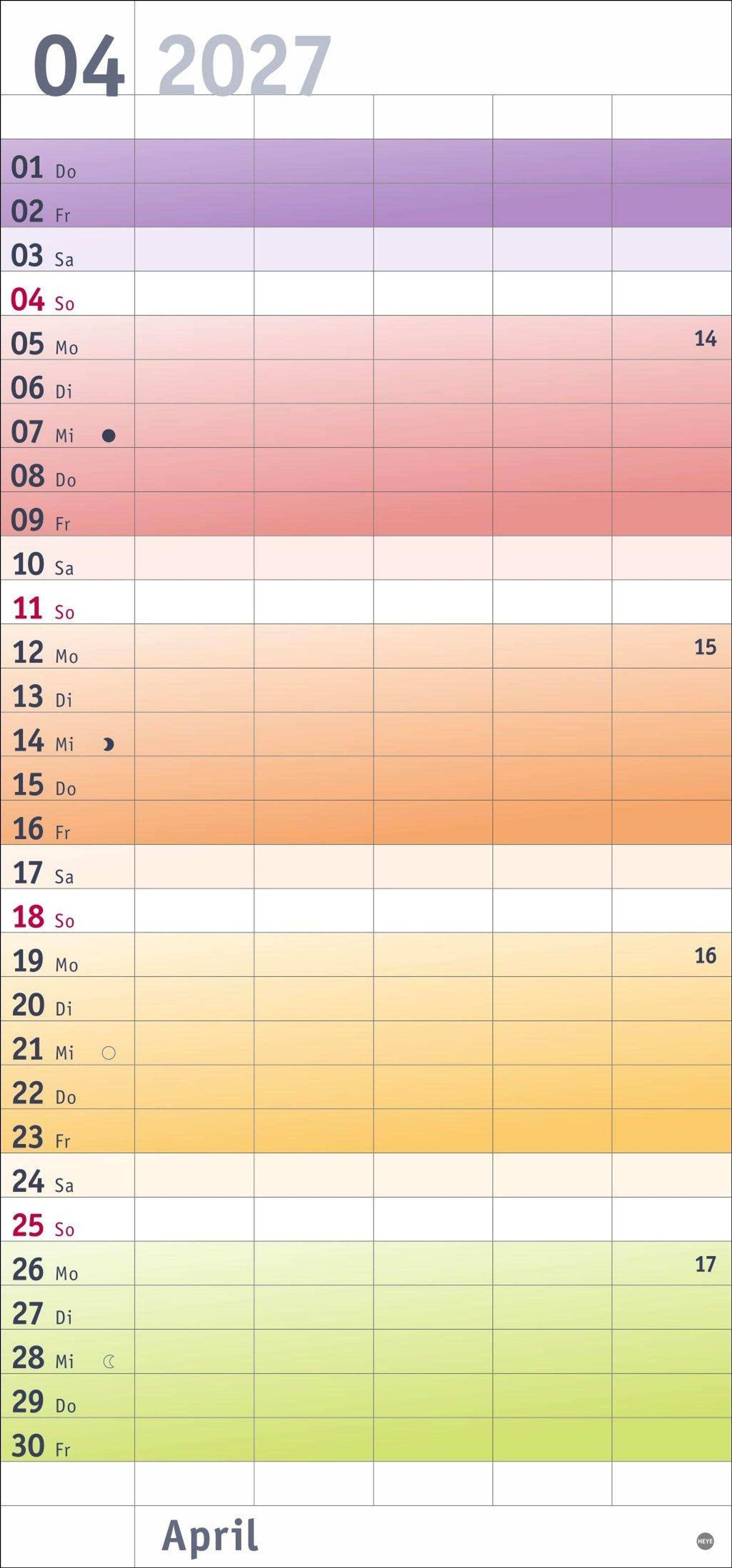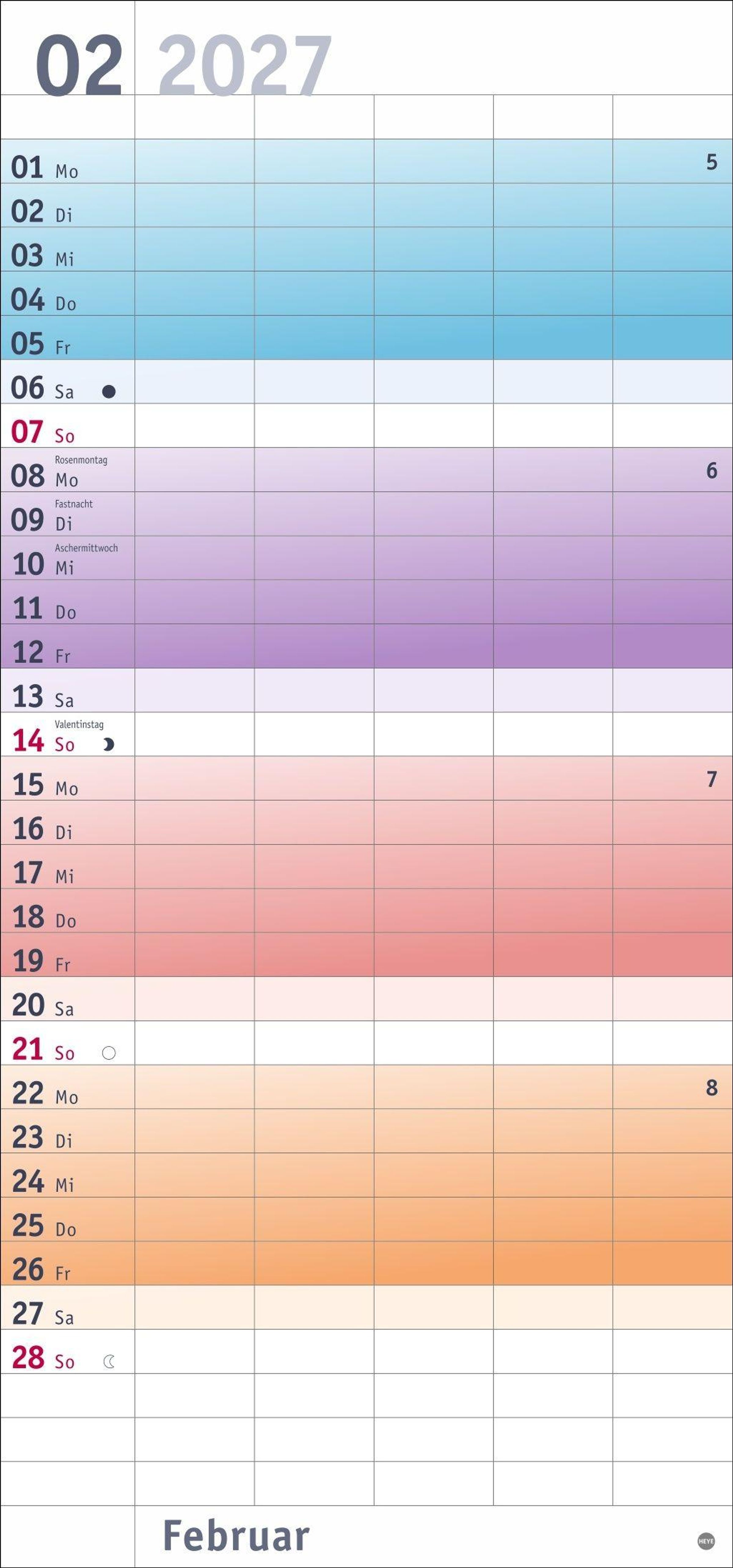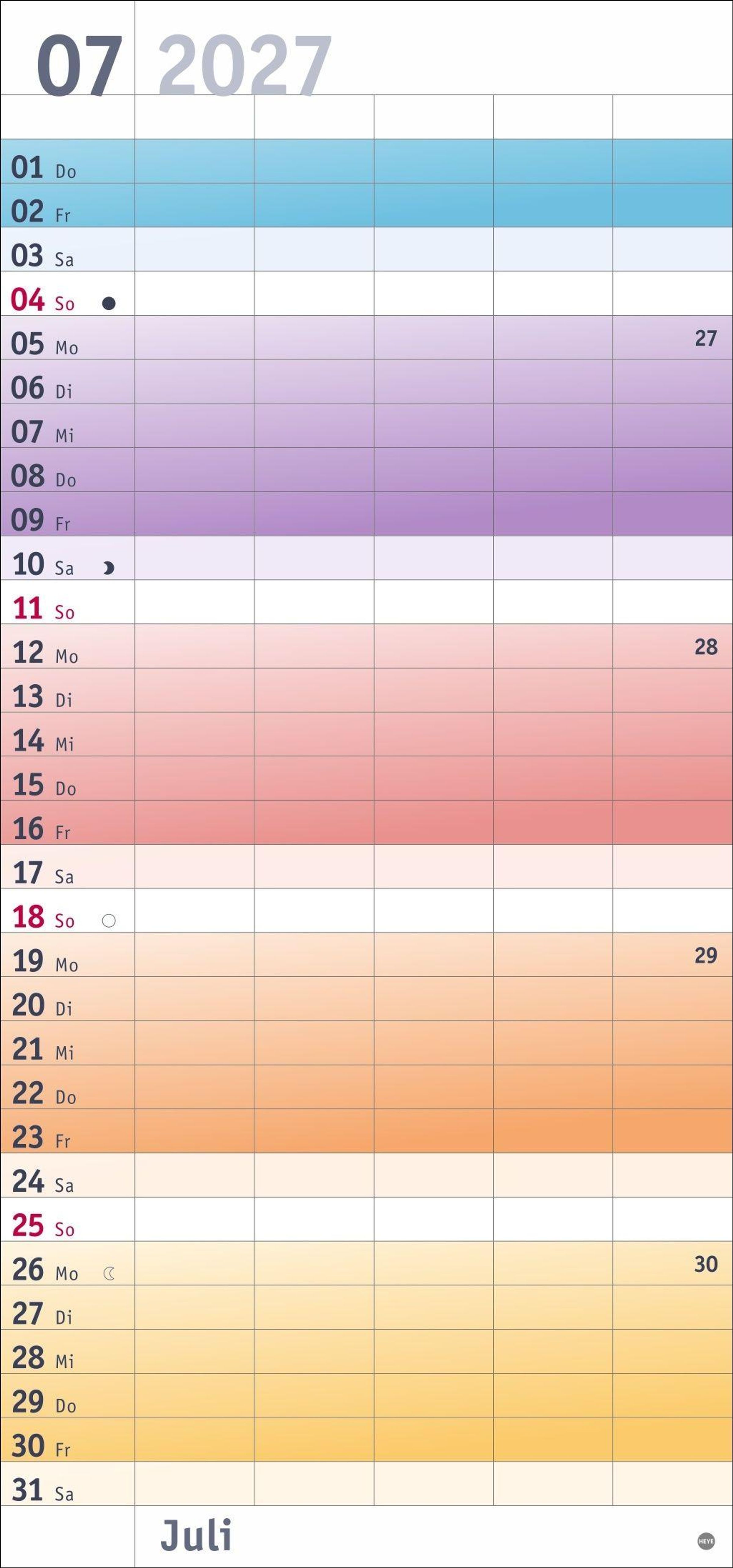 • Praktischer Wandplaner mit 5 Spalten. Familien Wandkalender mit Schulferien und 3-Monats-Ausblick aufs Folgejahr. Terminkalender 2027.