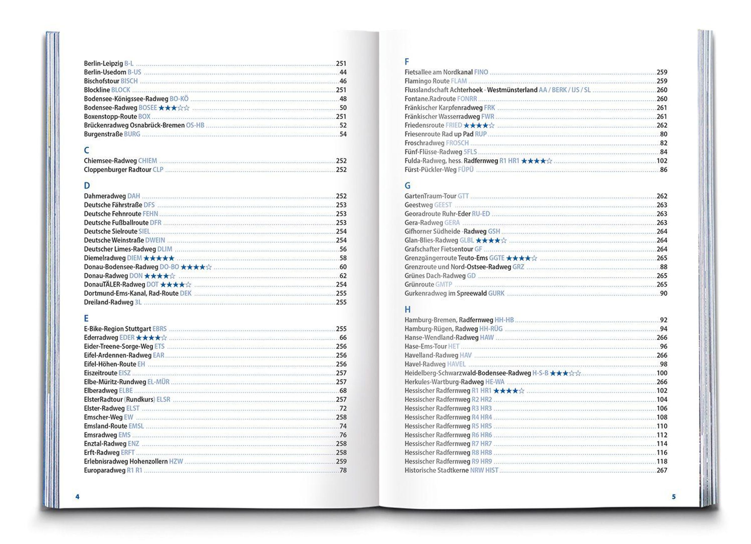 Der Bestseller ist die ideale Entdeckungs- und Planungshilfe für die schönsten Radrouten - mittlerweile in der 14. Auflage! Fahrradtourismus liegt im Trend - Radurlaub ist gesund, aktiv und macht Freude...die schönsten Routen führen entlang ausgeschilderter Radfernwege vom beliebten Klassiker zum Geheimtipp. Ob Nordsee, Weser, Ruhrgebiet, Donau oder Neiße - die 260 attraktivsten überregionalen Strecken in ganz Deutschland werden von kompetenten Autoren ausführlich beschrieben, charakterisiert und kommentiert. Eine Übersichtsskizze, nützliche Adressen und eine Qualitätsanalyse von Radreiseexperten runden das Infopaket ab. Die aktuelle Übersichtskarte zeigt die komplette Routenübersicht und die vielfältigen Verknüpfungsmöglichkeiten des über 50.000 km langen Radroutennetzes. 288 Seiten durchgehend farbig kostenloser GPS-Track Download aller 260 Radfernwege Die Routen im Überblick: A 100 Schlösser Route 2-Länder Route 3 Länder Radweg 3-Flüsse-Tour 3-Seen-Tour 7-Schwaben-Tour Aa-Vechta-Tour agri-cultura-Route Ahr-Radweg Aischtal-Radweg Alb-Neckar-Radweg Albtäler-Radweg Aller-Radweg Allgäu-Radweg Alte Salzstraße Altmarkrundkurs Altmühltal-Radweg Ammer-Amper-Radweg Ammerlandroute Amper-Altmühl-Route B BahnRadRoute Hellweg-Weser BahnRadRoute Teuto-Senne BahnRadRoute Weser-Lippe BahnRadWeg Hessen Baumberger Sandsteinroute Benediktweg Berliner Mauerweg Berlin-Kopenhagen Berlin-Leipzig Berlin-Usedom Bischofstour Bodensee-Königssee-Radweg Bodensee-Radweg Boxenstopp-Route BrückenradwegOsnabrück-Bremen Burgenstraße C Chiemsee-Uferweg Cloppenburger Radtou D Dahmeradweg Deutsche Fährstraße Deutsche Fehnroute Deutsche Fußballroute Deutsche Sielroute Deutsche Weinstraße Deutscher Limes-Radweg Diemelradweg Donau-Bodensee-Radweg Donau-Radweg Dortmund-Ems-Kanal, Rad-Route Dreiland-Radweg E Ederradweg Eider-Treene-Sorge-Weg Eifel-Höhen-Route Eiszeitroute Elbe-Müritz-Rundweg Elberadweg Elster-Radweg Emscher-Weg Emsland-Route Emsradweg Enztal-Radweg Erft-Radweg Europaradweg R1 F Flusslandschaft Achterhoek - Westmünsterland Friedensroute Friesenroute Rad up Pad Froschradweg Fünf-Flüsse-Radweg Fürst-Pückler-Weg G GartenTraum-Tour Gera-Radweg Glan-Blies-Radweg Grafschafter Fietsentour Grenzgängerroute Teuto-Ems Grenzroute und Nord-Ostsee-Radweg Grünroute Gurkenradweg im Spreewald H Hamburg-Bremen, Radfernweg Hamburg-Rügen, Radweg Hase-Ems-Tour Havelland-Radweg Havel-Radweg Heidelberg-Schwarzwald-Bodensee-Radweg Herkules-Wartburg-Radweg Hessischer Radfernweg R1 Hessischer Radfernweg R2 Hessischer Radfernweg R3 Hessischer Radfernweg R4 Hessischer Radfernweg R5 Hessischer Radfernweg R6 Hessischer Radfernweg R7 Hessischer Radfernweg R8 Hessischer Radfernweg R9 Historische Stadtkerne NRW Historische Stadtkerne Brandenburg, Radrouten 1+2 Hohenlohe-Ostalb-Weg Hohenzollern-Weg Holsteinische-Schweiz-Radtour I Iller-Radweg Ilmenauradweg Ilmental-Radwanderweg Innenradweg Internationale Dollard Route Isarradweg K Kinzigtal-Radweg Kocher-Jagst-Radweg Kohle-Wind & Wasser- Tour Kraichgau-Hohenlohe-Radweg Kraut & Rüben Radweg kunstwegen - Vechtetalroute Kyll-Radweg L Lahntalradweg LandesGartenSchau-Route NRW Leine-Heide-Radweg Lenneroute Liebliches Taubertal M Maare-Mosel-Radweg MainRadweg Main-Werra-Radweg Märkische Schlössertour Mecklenburgischer Seen-Radweg Mönchsweg Mosel-Radweg Mozart-Radweg Mulderadweg münchen venezia N Naabtal-Radweg Nahe-Hunsrück-Mosel Nahe-Radweg Neckartal-Radeweg Niederlausitzer Bergbautor NiederRheinroute Nord-Ostsee-Kanal-Tour Nordseeküsteradweg O Oberschwaben-Allgäu-Weg Ochsenweg Odenwald-Madonen-Weg Oderbruchbahn Oder-Neiße-Radweg Oder-Spree-Tour Ostseeküsten-Radweg P Paderborner Land Route Panorama-Radwege Prüm-Radweg R Radroute der Megalithkultur Radrunde Allgäu Regental-Radweg RegnitzRadweg Rennsteig-Radweg Rheinradweg Rhönradweg Römer-Lippe-Route Romantische Straße Route der Industriekultur RuhrtalRadweg RurUfer-Radweg S Saaleradweg Saaletal-Radwanderweg / Fränkische Saale Saarland-Radweg Saar-Radweg Sächsische Mittelgebirge, Radroute / Krušnohorská magistrála Salinen-Radweg Schlossparkrunde im Allgäu Schwäbische-Alb-Weg Schwarzachtal-Radweg Schwarzwald Panorama-Radweg Seenland-Route Sieg, Radweg Sieg Spree-Radweg Stromberg-Murrtal-Radweg Südschwarzwald-Radweg T Tauernradweg Thüringer Städtekette, Radwanderweg Töddenland-Radweg Tour Brandenburg Tour de Baroque Tour de Fries U Uckermärkischer Radrundweg Unstrutradweg V VeloRoute SaarLorLux Vennbahn, Radweg Via Claudia Augusta Via Romana Vistalradweg Vom Main zur Rhön Vom Teufelsmoor zum Wattenmeer Vulkanradweg W Warnowtal Rundweg Wasserburgen-Route Werratal-Radweg Werse Radweg Weser-Harz-Heide-Radfernweg Weser-Radweg Westfälische Mühlenroute Wikinger-Friesen-Weg Wümme-Radweg Z Zschopautal-Radweg Zusam-Radweg