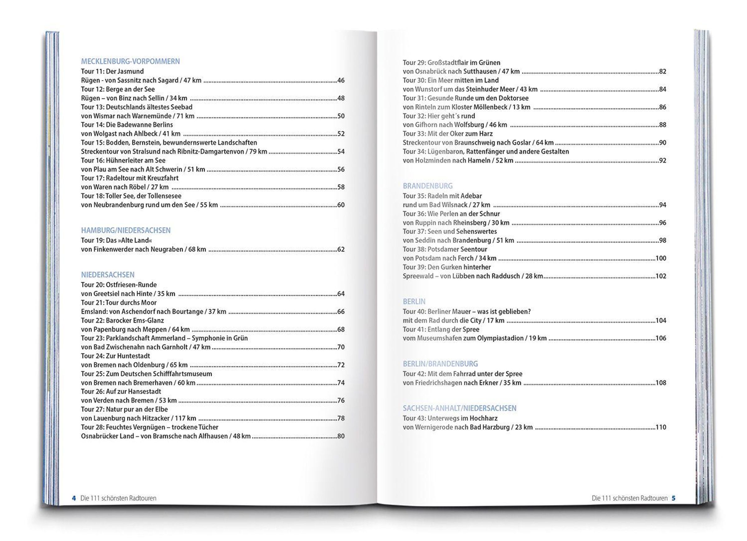 111 abwechslungsreiche und familienfreundliche Radtouren mit einer Länge zwischen ca. 5 und rund 100 Kilometern Genussradeln pur bei Tagesausflug oder Wochenendtour, im Urlaub oder vor der Haustür - von der Küste bis zu den Alpen. Erleben Sie mit Ihrer Familie tolle Touren in den schönsten Radregionen unserer Republik. Dieses Buch bietet 111 Vorschläge für ungetrübten Radlgenuss auf sorgfältig ausgewählten und von den kompetenten Autoren "erfahrenen"Strecken. Vom Klassiker an Nord- und Ostsee, Altmühl, Donau oder Elbe über die traditionellen Radfahr-Regionen Münsterland oder Mecklenburgische Seenplatte bis zum Geheimtipp im gar nicht trüben "Kohlenpott"oder im Emsland. Maritimes Flair unter Schleswig-Holstein-Himmel, Flussradeln durch idyllische Auen, unberührte Landschaften, Industriekultur, Stadtrandtouren, Bayerische Bergkulisse...reich bebildert und mit zahlreichen Insider-Tipps zu Sightseeing on tour, Historie und Histörchen, Kunst, Kultur und Küche. Eine detaillierte Tourenbeschreibung und ein mit zahlreichen Infos für Radler angereicherter Kartenausschnitt führen Sie "ziel-sicher"auf dem richtigen Weg. Verfahren unmöglich - Freizeitspaß garantiert! zusätzliches kostenfreies Online-Angebot gpx-Tracks der Touren zum Download * jeweils eine Doppelseite pro Route * jede Tour besteht aus einem Textteil mit Infoblock, komprimierter Routenführung und zahlreichen Tipps für Sightseeing und Rast on tour, ein bis zwei attraktiven Fotos und einem Kartenausschnitt * die Touren verlaufen auf asphaltierten Neben- und verkehrsarmen Landstraßen, auf geschotterten und abschnittsweise auch unbefestigten Wander-, Wald und Feldwegen Tourenübersicht Schleswig-Holstein: Tour 1: DIE Insel von Westerland nach List / 62 km Tour 2: Auf den Spuren der Ochsen von Neumünster nach Rendsburg / 48 km Tour 3: Im Herzen des Wattenmeers von Husum nach Nordstrand / 53 km Tour 4: Durchs Schwedeneck nach Kiel von Eckernförde nach Kiel / 49 km Tour 5: Dänisches Feeling Ostseeküste - von Gettorf nach Strande / 51 km Tour 6: Wasser wohin wir sehen von Plön nach Stocksee / 45 km Tour 7: Ruhe und Abgeschiedenheit von Eutin nach Pönitz / 44 km Tour 8: Wettradeln mit den dicken Pötten von Glückstadt nach Brunsbüttel / 27 km NEU! Niedersachsen / Schleswig-Holstein: Tour 9: Die Route des weißen Goldes von Lüneburg nach Lübeck / 91 km Hamburg / Schleswig-Holstein: Tour 10: An der Oberalster von Ohlstedt nach Norderstedt / 40 km Tour 11: Ruhe und Abgeschiedenheit Rundtour durch den Hamburger Stadtpark / 6 km NEU! Mecklenburg-Vorpommern: Tour 12: Der Jasmund Rügen - von Sassnitz nach Sagard / 47 km Tour 13: Berge an der See Rügen - von Binz nach Sellin / 34 km Tour 14: Deutschlands ältestes Seebad von Wismar nach Warnemünde / 71 km Tour 15: Die Badewanne Berlins von Wolgast nach Ahlbeck / 41 km Tour 16: Hühnerleiter am See von Plau am See nach Alt Schwerin / 51 km Tour 17: Radeltour mit Kreuzfahrt von Waren nach Röbel / 27 km NEU! Tour 18: Toller See, der Tollensesee von Neubrandenburg rund um den See / 55 km Hamburg / Niedersachen: Tour 19: Das 'Alte Land' von Finkenwerder nach Neugraben / 68 km Niedersachsen: Tour 20: Ostfriesen-Runde von Greetsiel nach Hinte / 35 km Tour 21: Tour durchs Moor Emsland: von Aschendorf nach Bourtange / 37 km Tour 22: Barocker Ems-Glanz von Pappenburg nach Meepen / 64 km Tour 23: Parklandschaft Ammerland - Symphonie in Grün von Bad Zwischenahn nach Garnholt / 47 km Tour 24: Zur Huntestadt von Bremen nach Oldenburg / 65 km Tour 25: Zum Deutschem Schifffahrtsmusuem von Bremen nach Bremerhaven / 60 km Tour 26: Auf zur Hansestadt von Verden nach Bremen / 53 km Tour 27: Natur pur an der Elbe von Lauenburg nach Hitzacker / 117km Tour 28: Feuchtes Vergnügen - trockene Tücher Osnabrücker Land - von Bramsche nach Alfhausen / 48 km Tour 29: Großstadtflair im Grünen von Osnabrück nach Sutthausen / 47 km Tour 30: Ein Meer mitten im Land von Wunstorf um das Steinhuder Meer / 43 km Tour 31: Gesunde Runde um den Doktorsee von Rinteln zum Kloster Möllenbeck / 13 km NEU! Tour 32: Hier geht's rund von Gifhorn nach Wolfsburg / 46 km Tour 33: Lügenbaron, Rattenfänger und andere Gestalten von Holzminden nach Hameln / 52 km Brandenburg: Tour 34: Radeln mit Adebar Rund um Bad Wilsnack / 27 km Tour 35: Wie Perlen an der Schnur von Ruppin nach Rheinsberg / 30 km Tour 36: Seen und Sehenswertes von Seddin nach Brandenburg / 51 km Tour 37: Potsdamer Seentour von Potsdam nach Ferch / 34 km Tour 38: Den Gurken hinterher Spreewald - von Lübben nach Raddusch / 28 km Berlin: Tour 39: Berliner Mauer - was ist geblieben? mit dem Rad durch die City / 17 km Tour 40: Entlang der Spree vom Museumhafen zum Olympiastadion / 19 km Berlin / Brandenburg: Tour 41: Mit dem Fahrrad unter derSpree von Friedrichshagen nach Erkner / 35 km Sachsen-Anhalt / Niedersachsen: Tour 42: Unterwegs im Hochharz von Wernigerode nach Bad Harzburg / 23 km Sachsen-Anhalt: Tour 43: An der 'Harz-Grenze' von Blankenburg nach Ballenstedt / 38 km Tour 44: Von Bischöfen und Ingenieuren von Magdeburg zum Wasserstraßenkreuz / 18 km NEU! Tour 45: Rund um die Wiege der Reformation von der Lutherstadt Wittenberg nach Coswig / 44 km Nordrhein-Westfalen: Tour 46: Drahtesel und Pferde von Everswinkel nach Warendorf / 33 km Tour 47: Im Radfahrer-Paradies von Havixbeck nach Münster / 43 km Tour 48: Im Lipperland von Höxter nach Schieder-Schwalenberg / 56 km Tour 49: Kunst und Kultur am Niederrhein von Kleve nach Kalkar / 52 km Tour 50: Radpilgerfahrt von Geldern nach Kevelaer / 50 km Tour 51: Grüne Industriekultur von Essen-Katernberg zur Zeche Zollverein / 22 km Tour 52: Die Ratte vom Pott von Hattingen nach Herbede / 29 km Tour 53: Schlösser und Ruhrauen von Mülheim nach Essen / 30 km Tour 54: Sauerländer Tälerfahrt von Hohenlimburg nach Altena / 33 km Tour 55: Die donnernden Hämmer von Gevelsberg nach Hagen / 37 km Tour 56: Durch die Heide zur Burg von Rösrath nach Troisdorf / 48 km Tour 57: Von der Domstadt zur