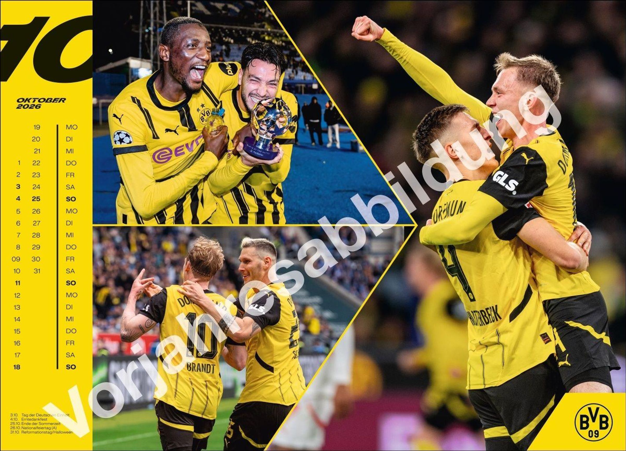 • Großer Wandkalender. Einzigartiger Fotokalender mit allen Stars von Borussia Dortmund. Wandkalender XXL für Fußballfans. Querformat 68 x 49 cm.