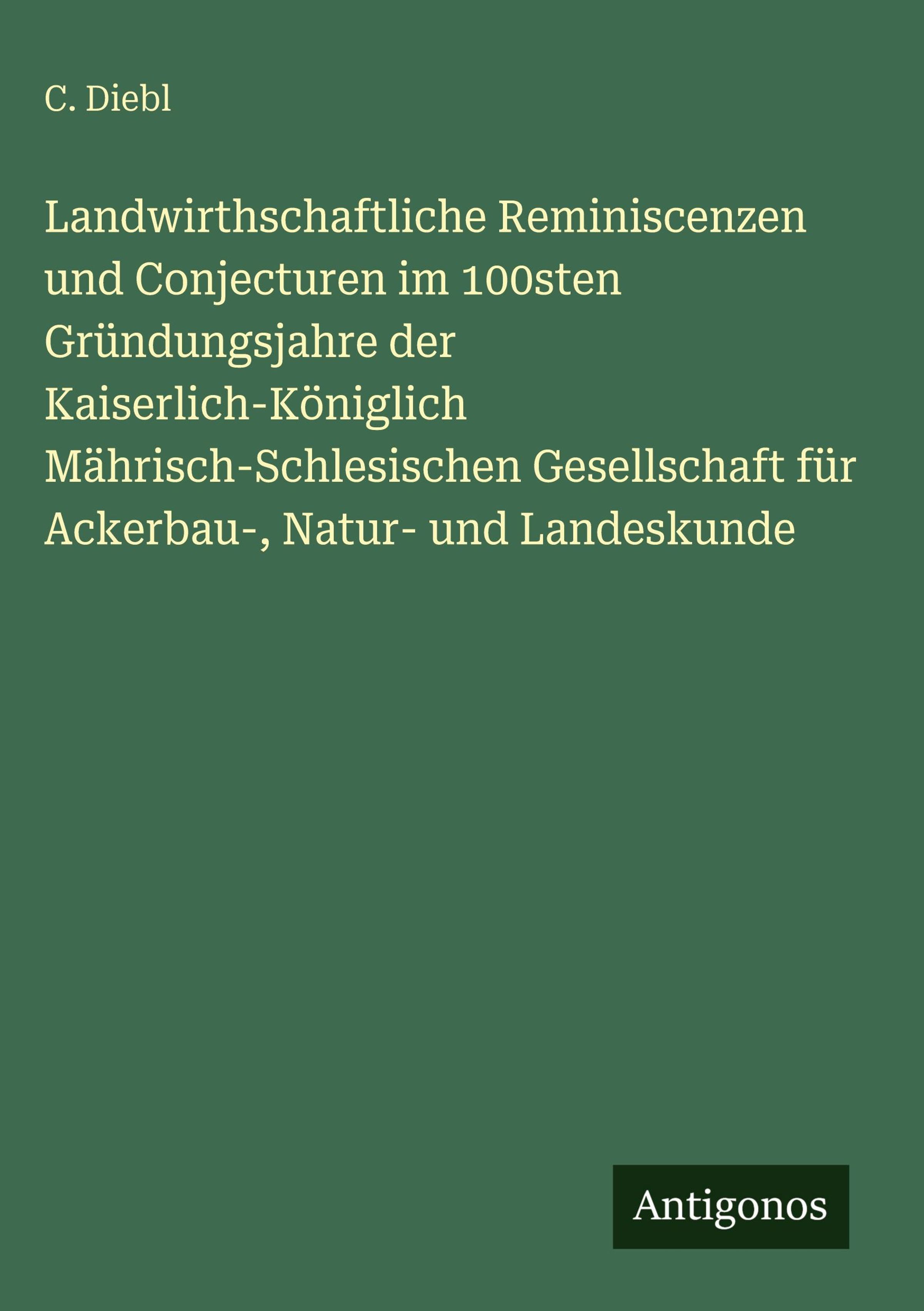 C. Diebl: Landwirthschaftliche Reminiscenzen und Conjecturen im 100sten Gründungsjahre der Kaiserlich-Königlich..., Gebunden