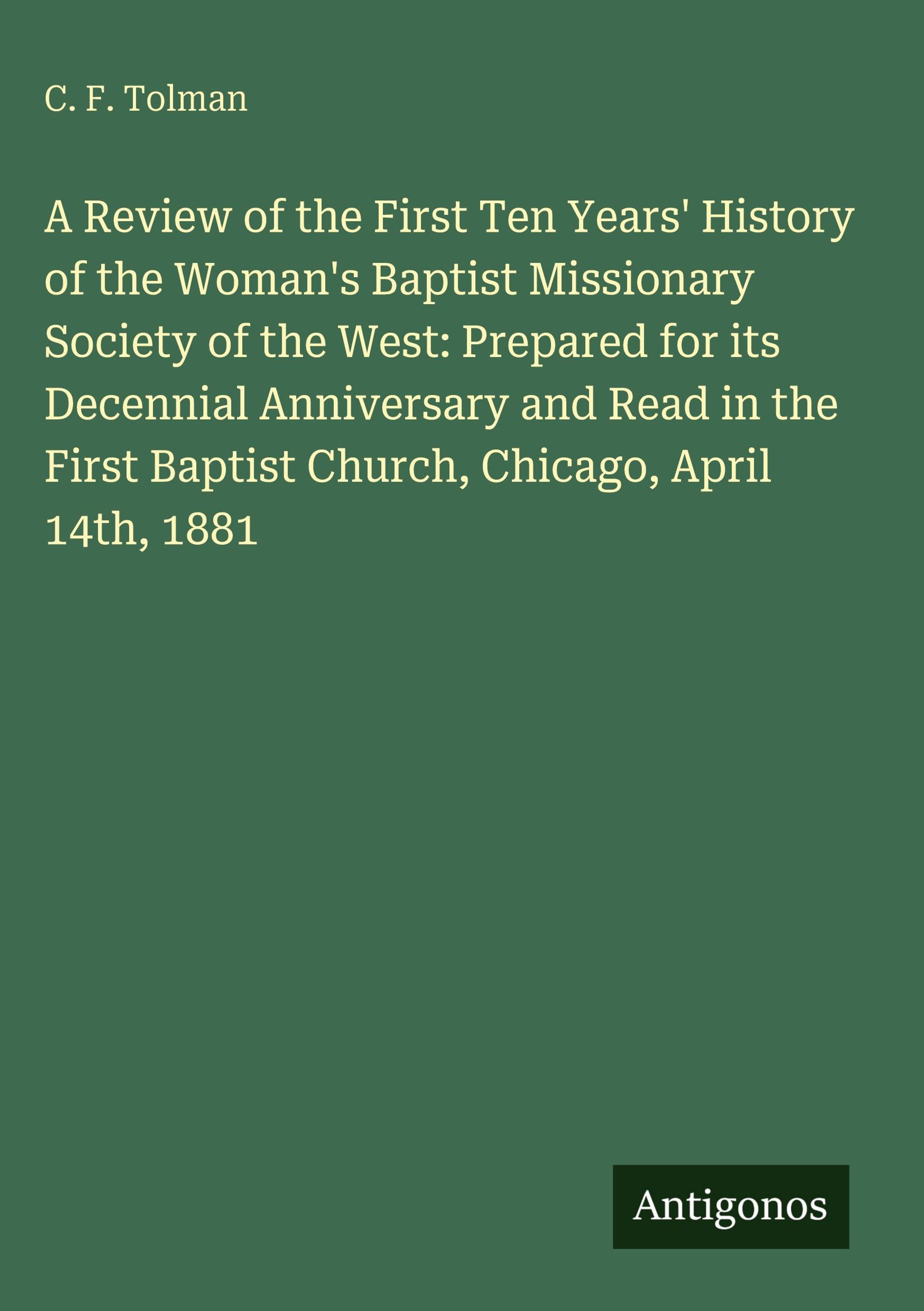 C. F. Tolman: A Review of the First Ten Years' History of the Woman's Baptist Missionary Society of the West:..., Gebunden