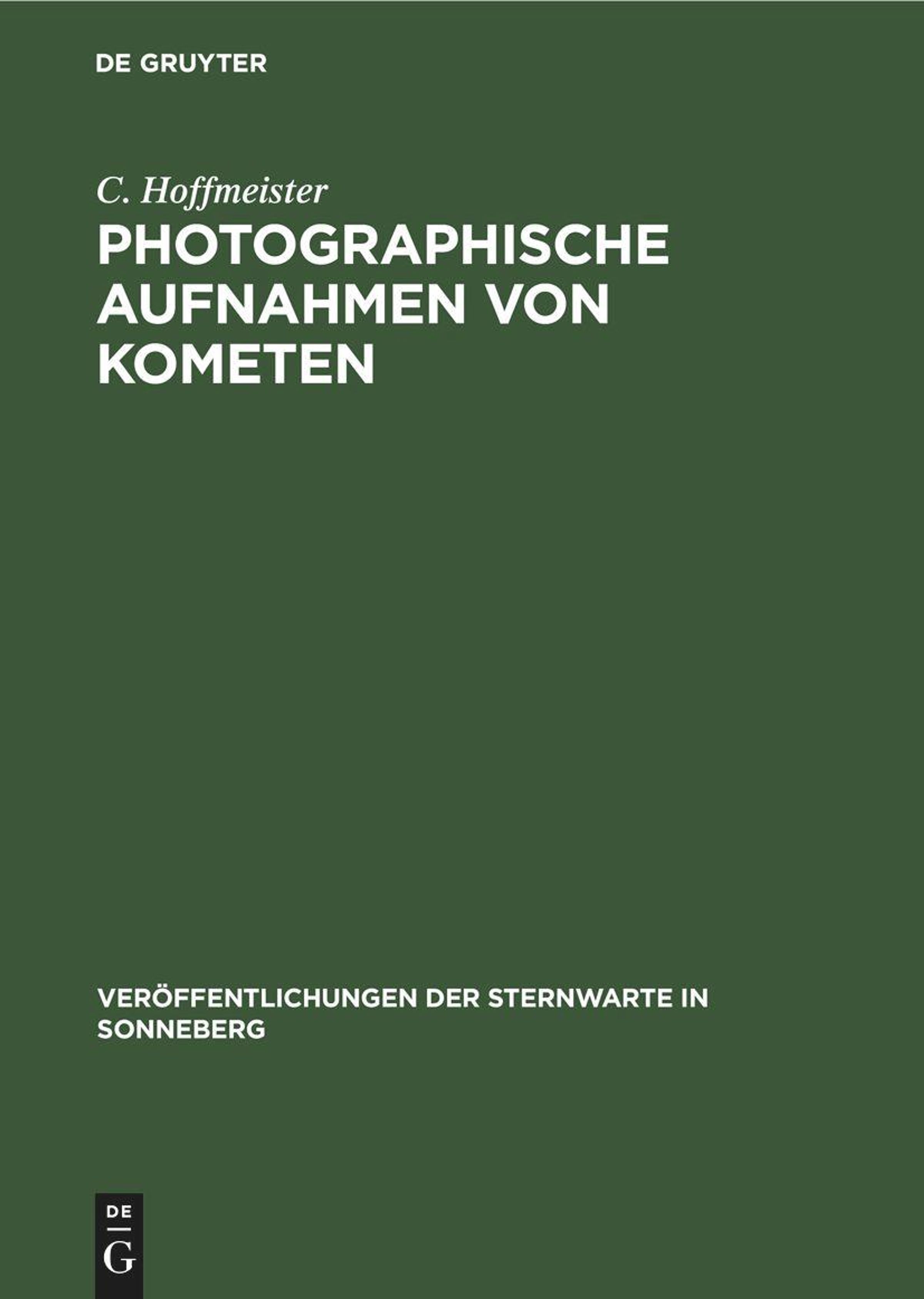 C. Hoffmeister: Photographische Aufnahmen von Kometen, Gebunden