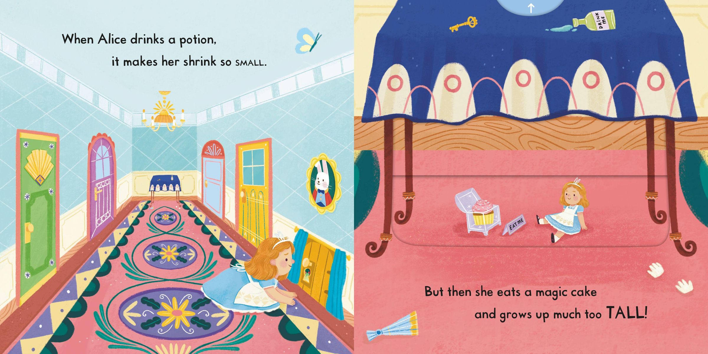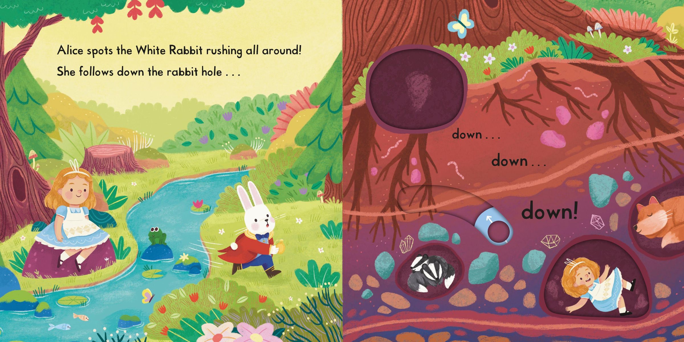 Push, pull and slide the colourful scenes to bring a classic story to life in this delightful introduction for toddlers to Lewis Carroll's Alice in Wonderland!