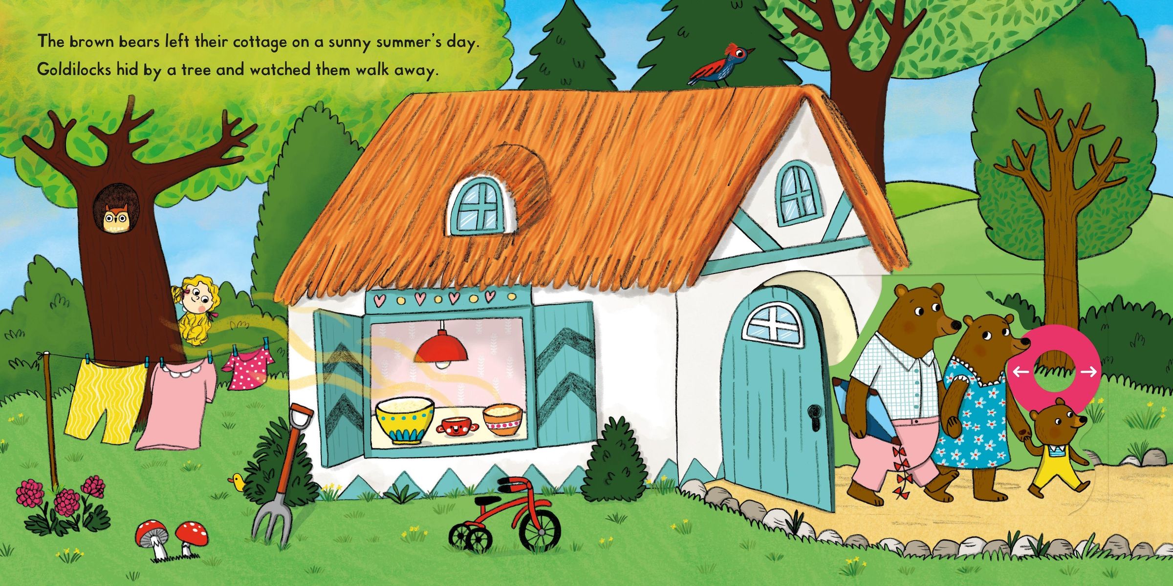 Push, pull, and slide the scenes to bring the classic fairy tale of Goldilocks and the Three Bears to life.