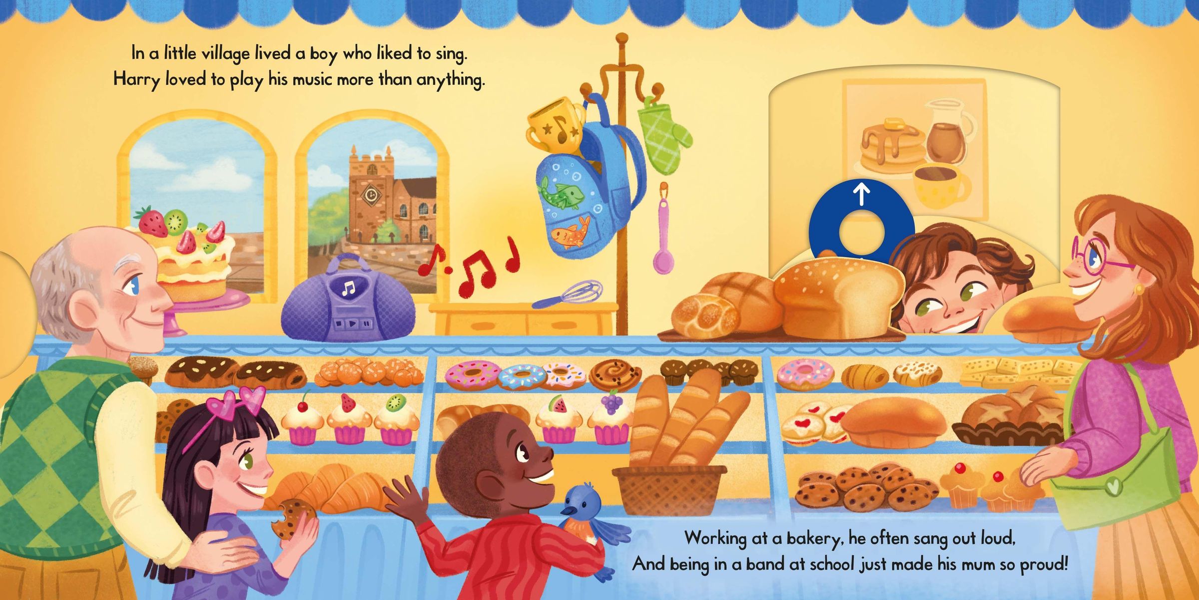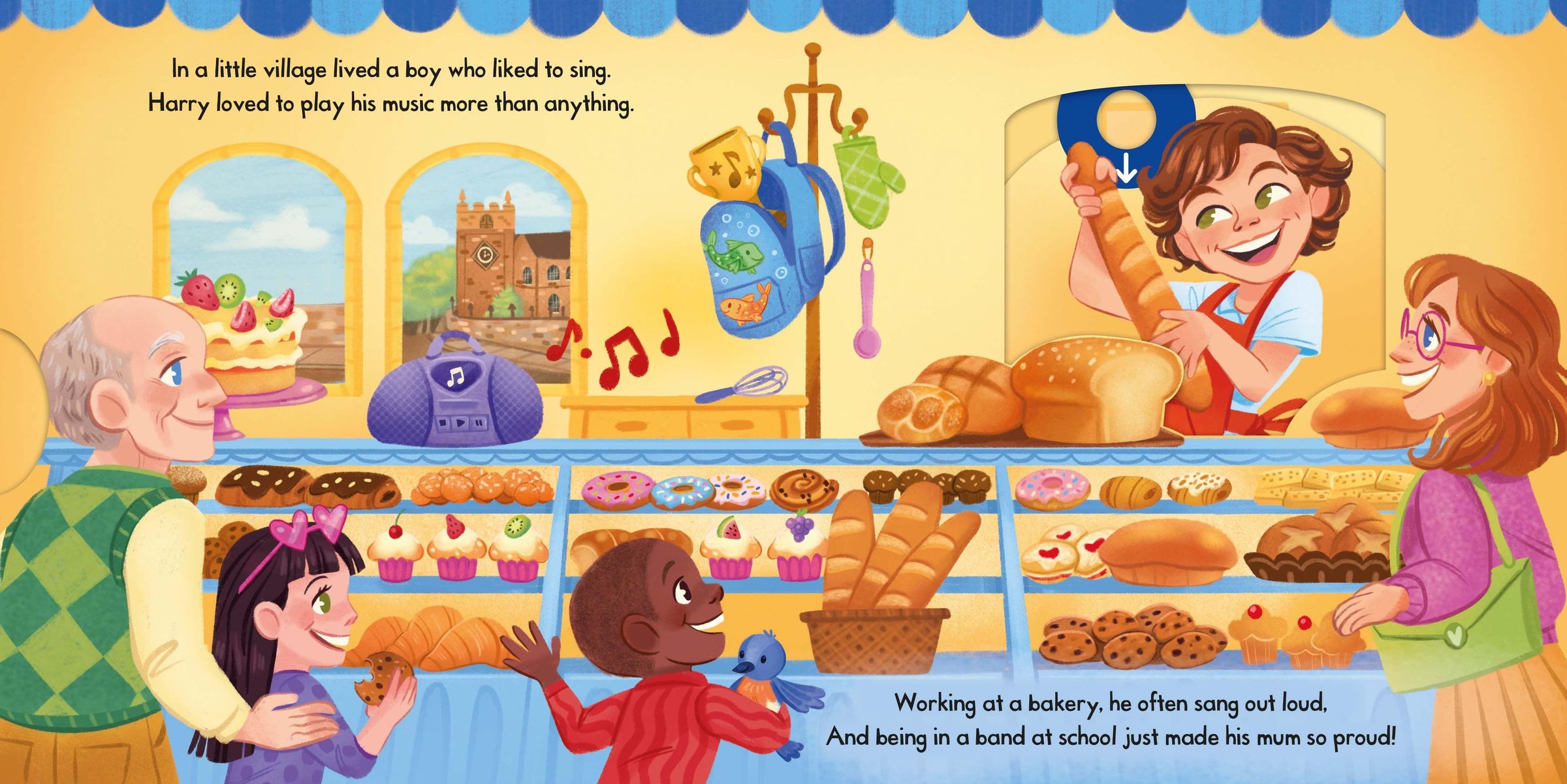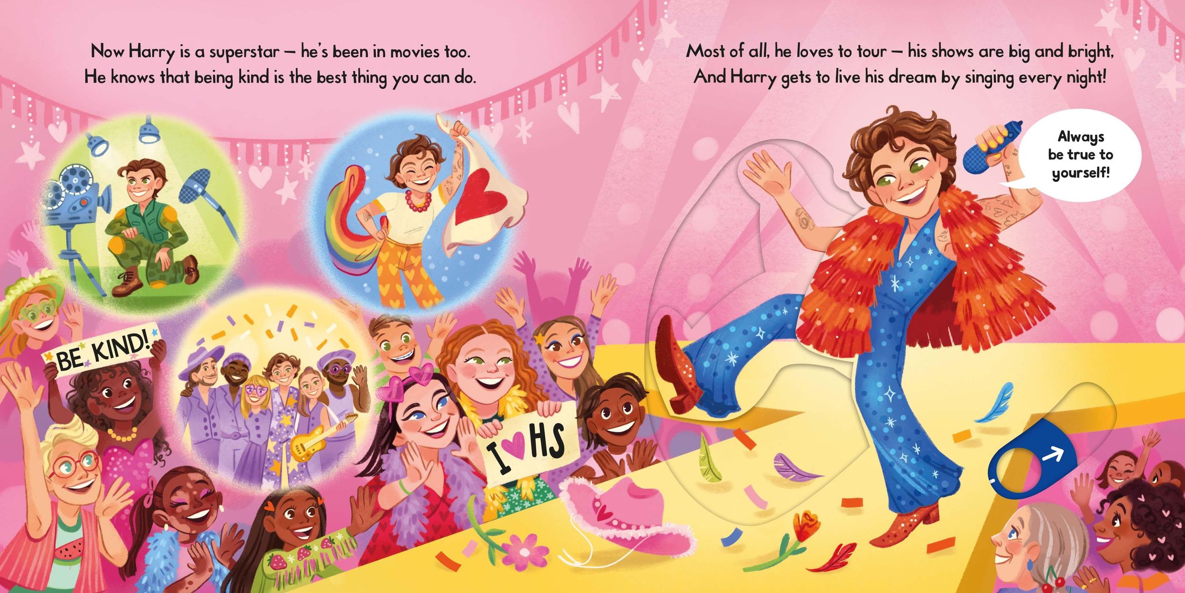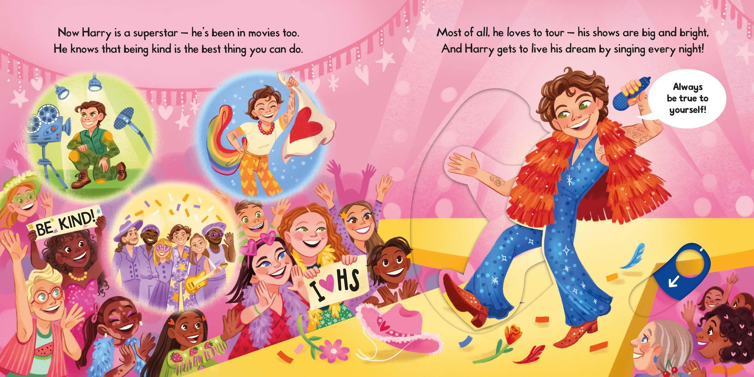A first novelty book about pop superstar, Harry Styles, featuring push, pull and slide mechanisms.