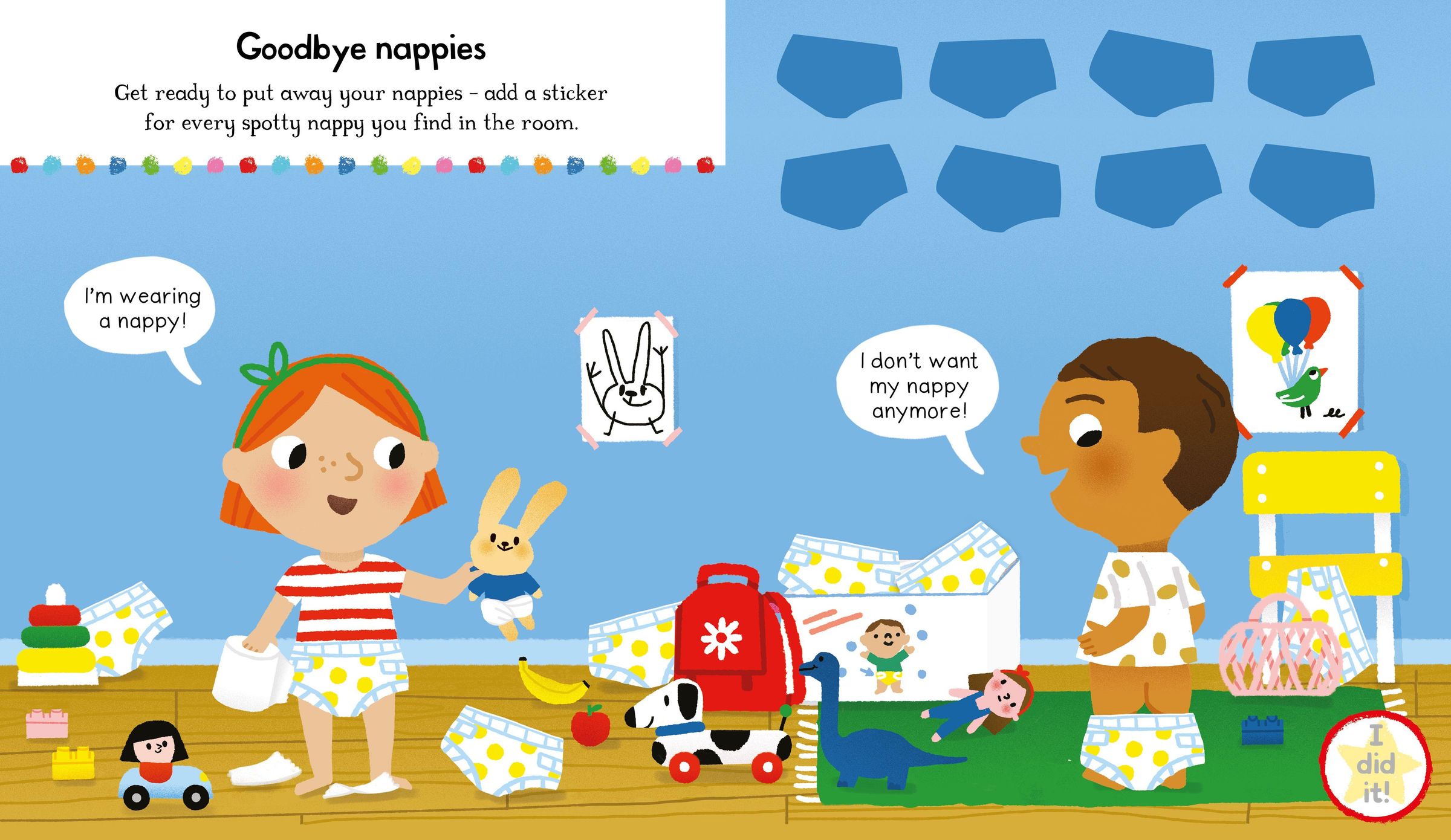 Get ready to say goodbye to nappies and use the potty in No More Nappies Sticker Activity Book!