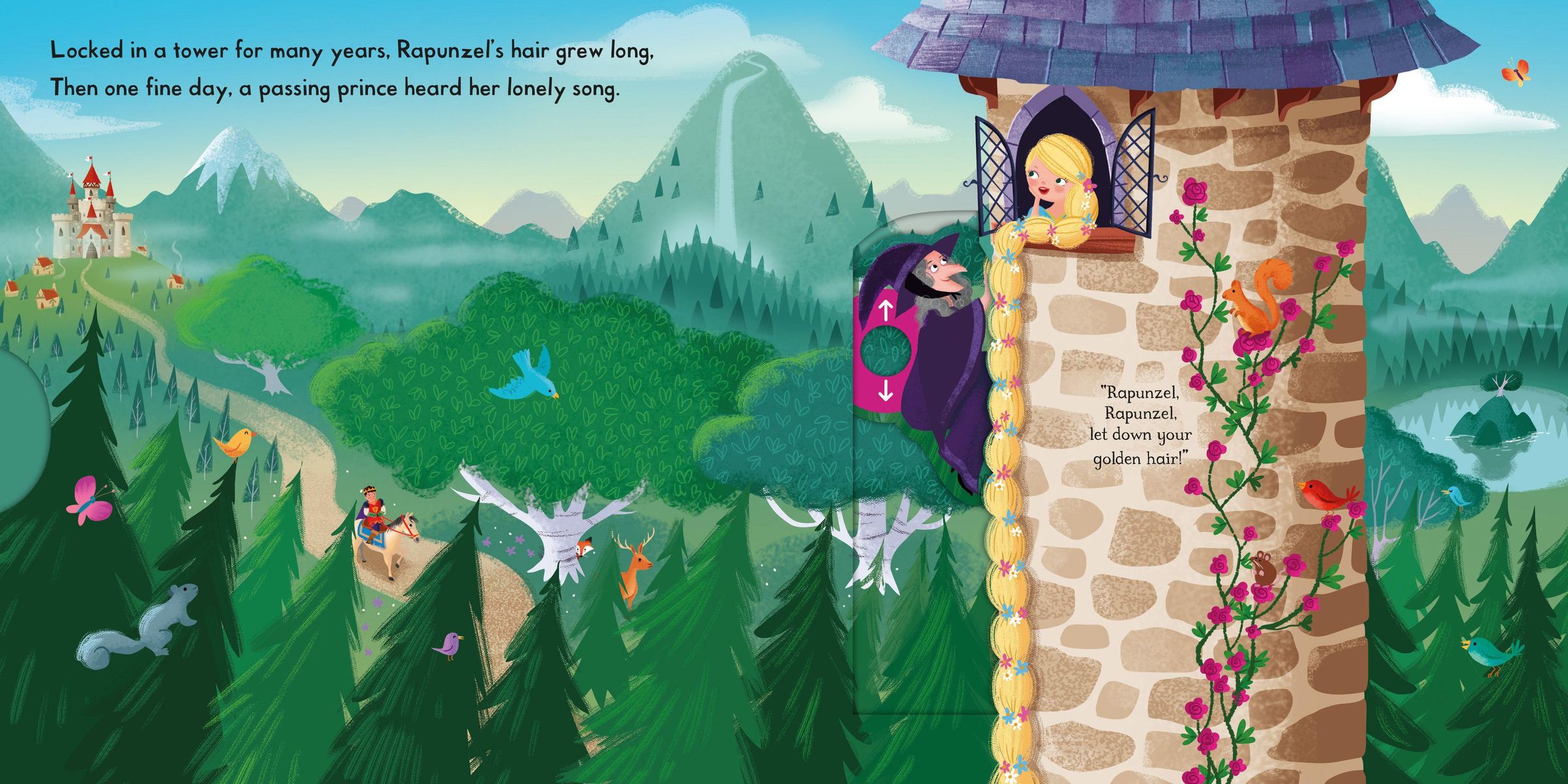 Push, pull and slide the colourful scenes to bring a classic fairy tale to life in this delightful introduction for toddlers to Rapunzel !