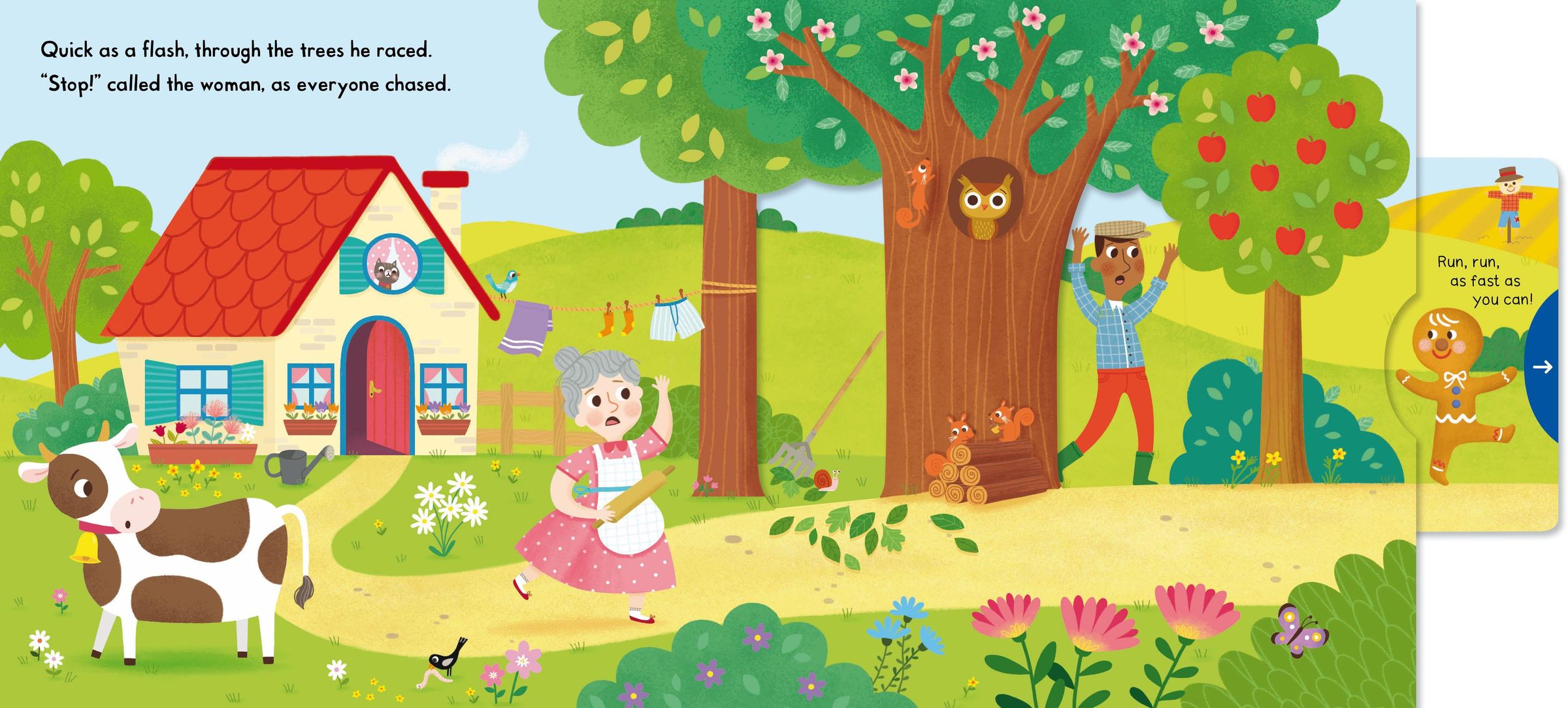 Push, pull and slide the scenes to discover the classic nursery tale of The Gingerbread Man!