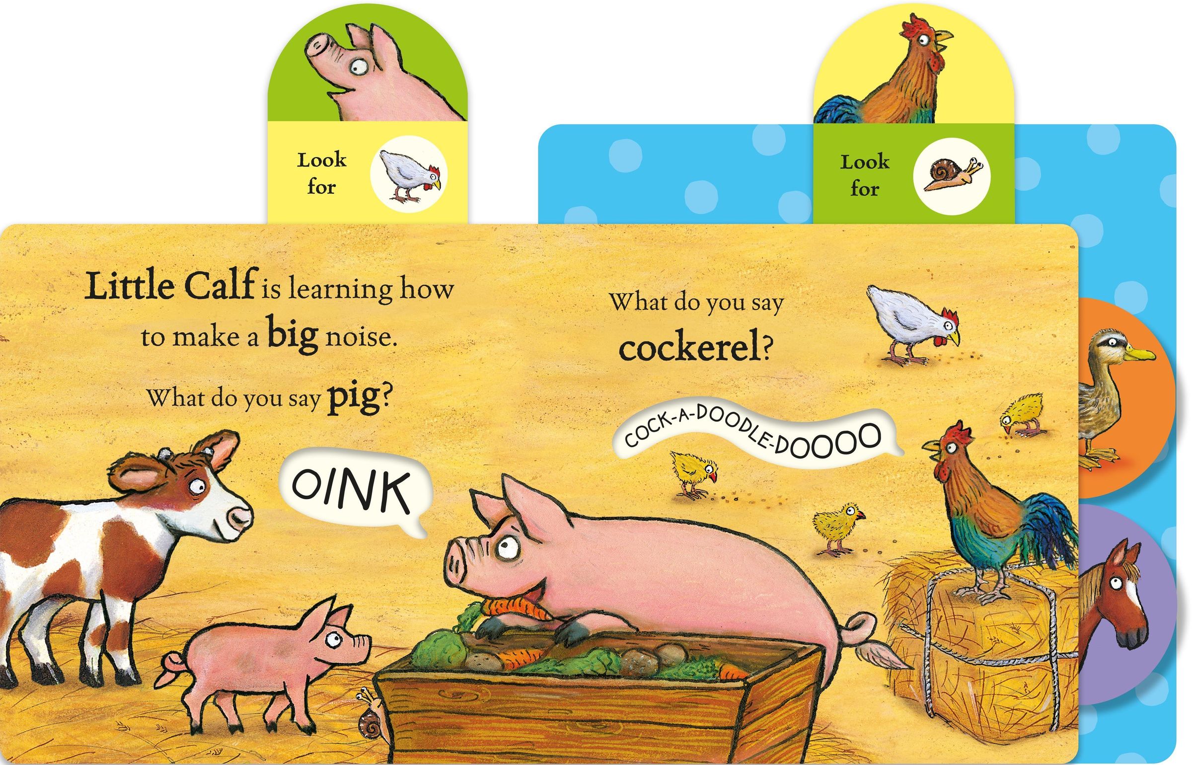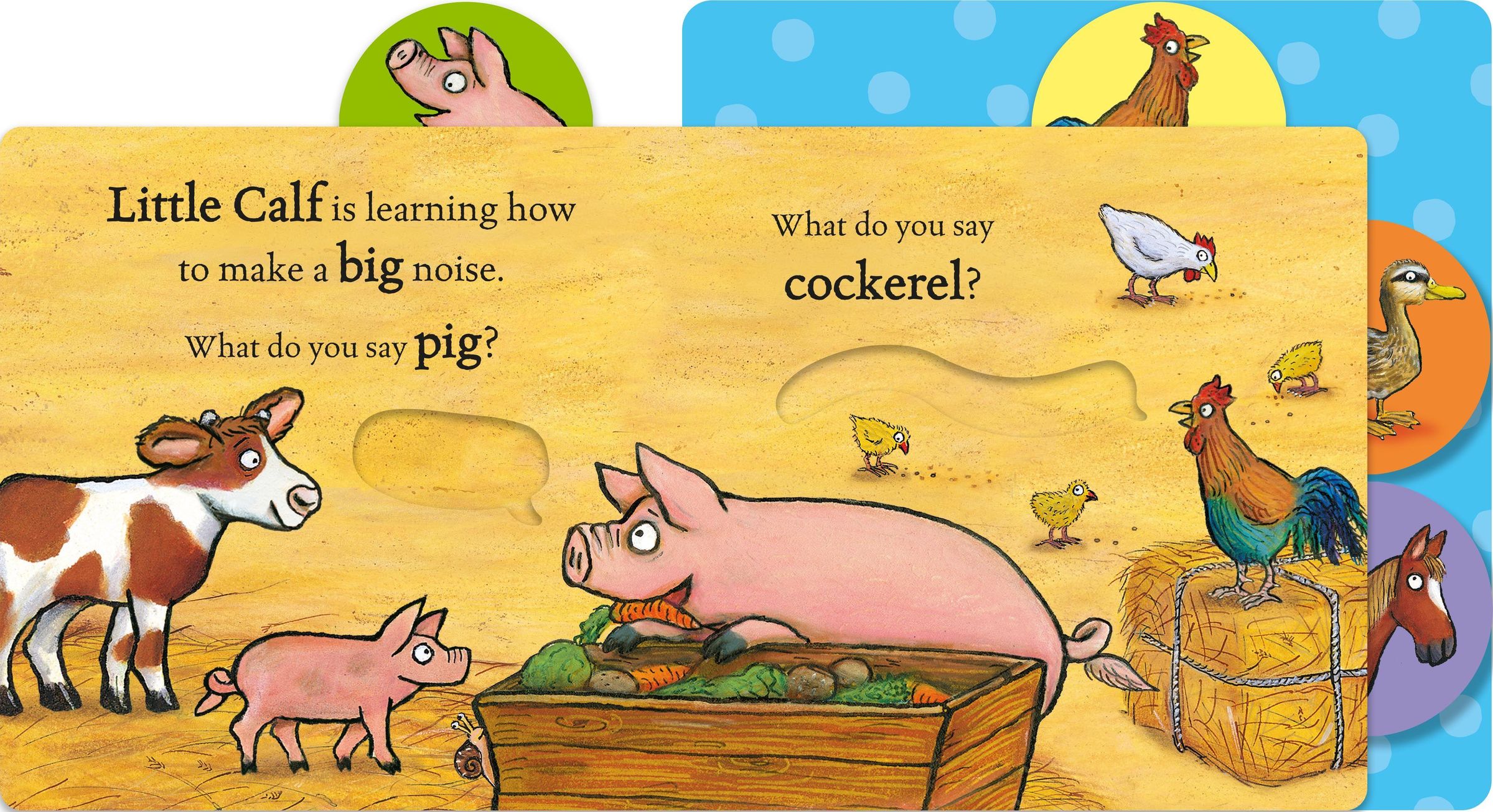 Follow Little Calf as she learns to make a big noise on the farm! Which other animals will she meet along the way, and what sounds do they make?