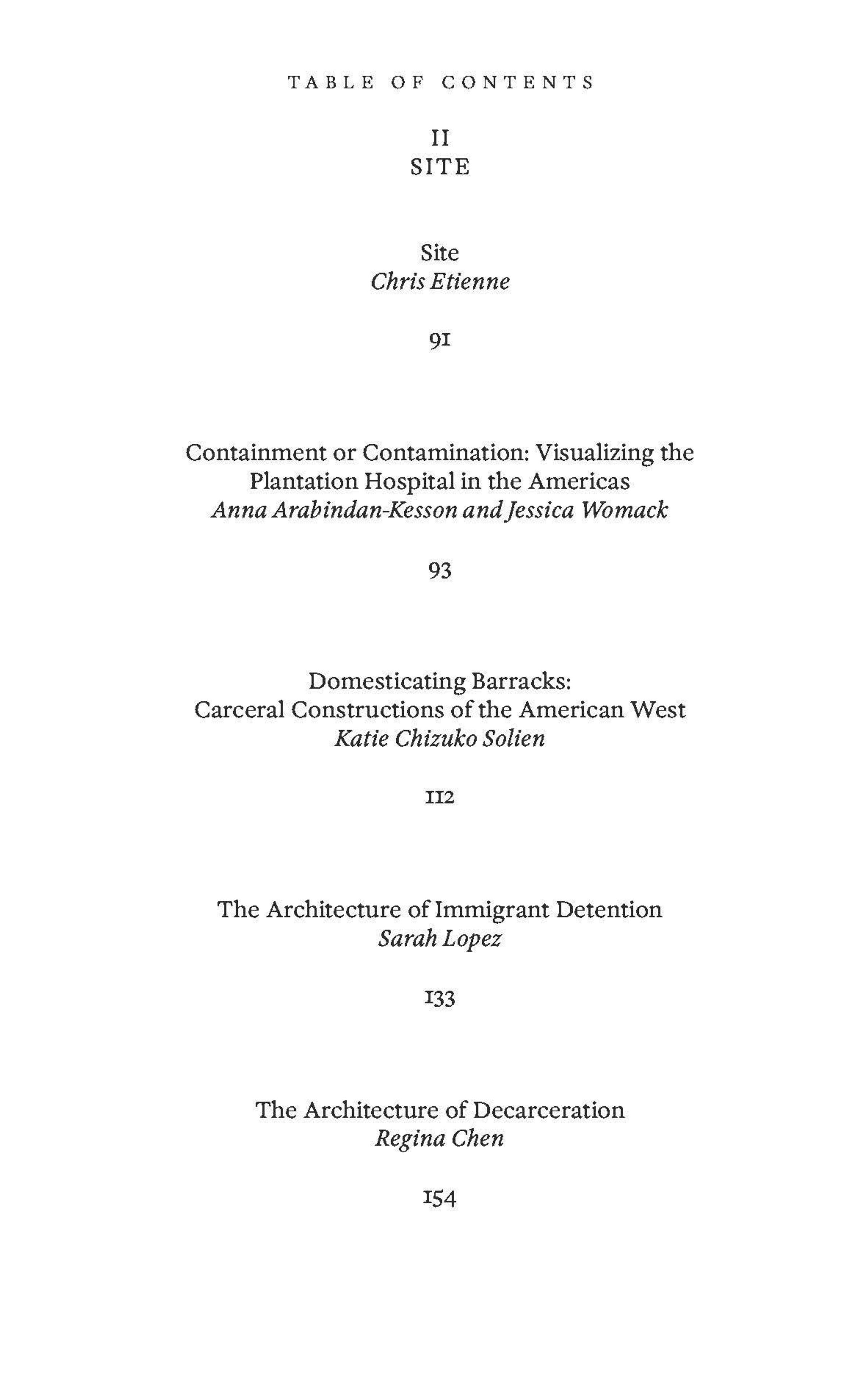 Mit Beiträgen von Amy Mielke, Andrea Armstrong, Anna Arabindan Kesson, Basile Baudez, Charlie McWeeny, Christopher Etienne, Christopher Talib Charriez, Dolfinette Martin, Een Jabriel, Élisabeth Lusset, Ennead Lab, Ess Pokornowski, Falk Bretschneider, Grégoire Korganow, Ibrahim Sulaimani, Isabelle Bonzom, Isabelle Heullant-Donat, Ithaka S+R, Jessica Womack, Jill Stockwell, Joel Negron, Juan Moreno Haines, Katie Chizuko Solien, Kennedy Mattes, MASS Design Group, Myriam Taylor Fair, Nafeesah Goldsmith, Per(Sister), Regina Chen, rl Goldberg, Sam Johnson, Sarah Lopez, Sowande' Mustakeem, Spencer Weinreich, Syrita Seib, Tammy Ortiz (Ithaka S+R) und Victoria Bergbauer