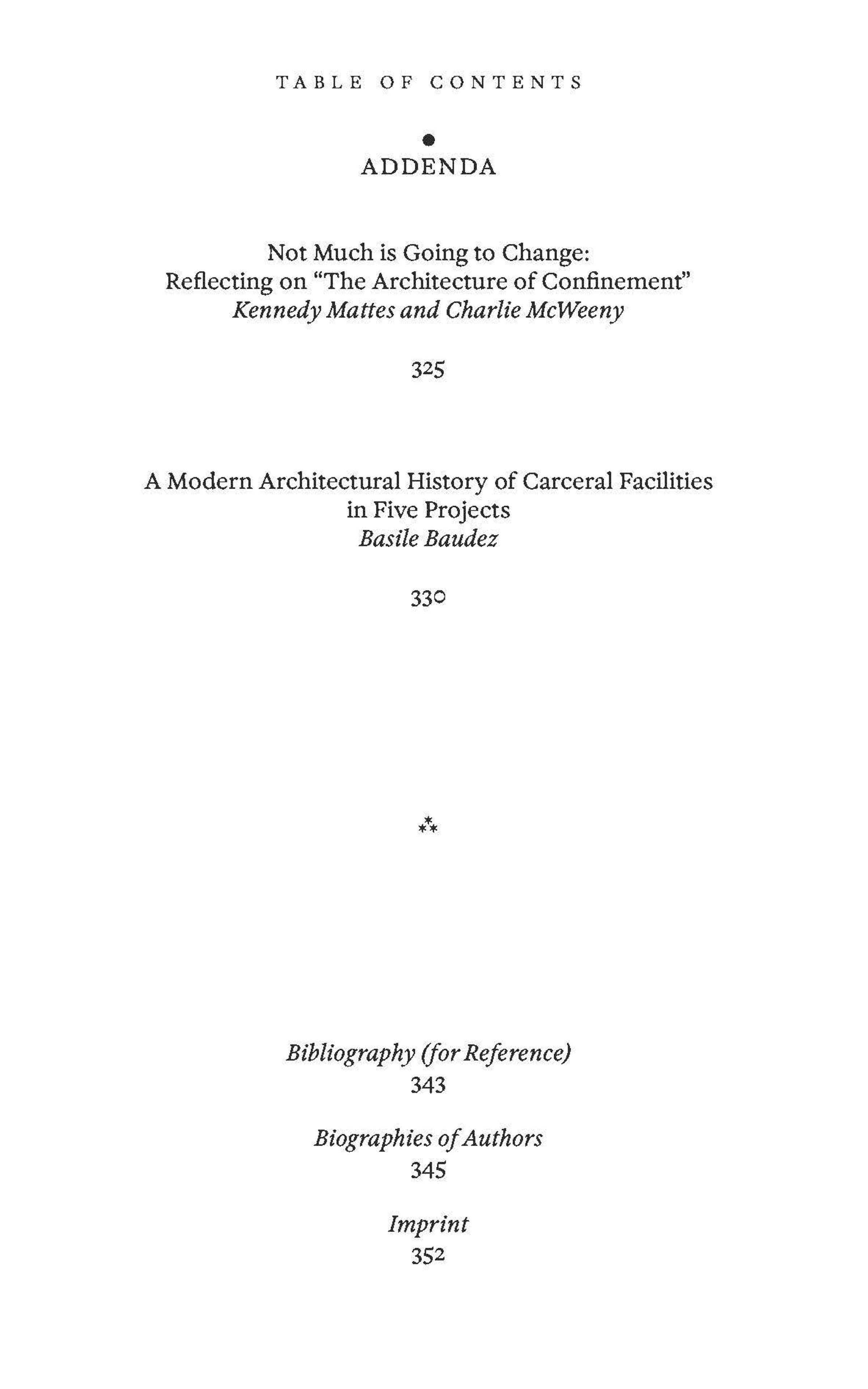 Wenn Architektur als Werkzeug zur Bestrafung durch Inhaftierung und Isolation dient, wirkt sich jeder Entwurf auf das Leben während und nach der Haftzeit aus: Was ist Gefängnisarchitektur? Wo existieren Hafträume, angefangen von Justizvollzugsanstalten bis zu Migrationslagern und weiteren Einrichtungen? Wie beeinträchtigt ihre räumliche Logik unsere heutige Gesellschaft? Carceral Architecture bietet den Leser*innen erstmals eine Übersicht über Gefängnisentwürfe und ihre Auswirkungen, indem neben Aktivist*innen, Architekt*innen, Designer*innen, Wissenschaftler*innen, Künstler*innen und Student*innen auch Menschen zu Wort kommen, die vom Strafvollzugssystem in den Vereinigten Staaten betroffen sind. Dabei macht das Buch auf ein stark vernachlässigtes Thema unserer Zeit aufmerksam und hilft, eine Gesellschaft zu hinterfragen, in der Masseninhaftierung immer noch Realität ist.