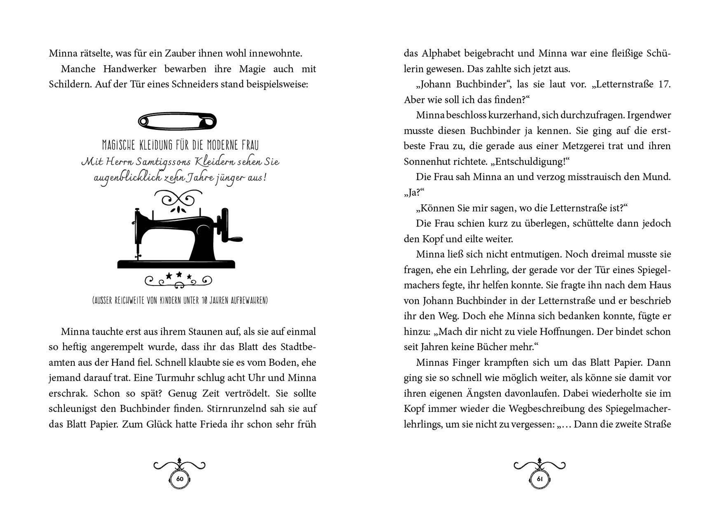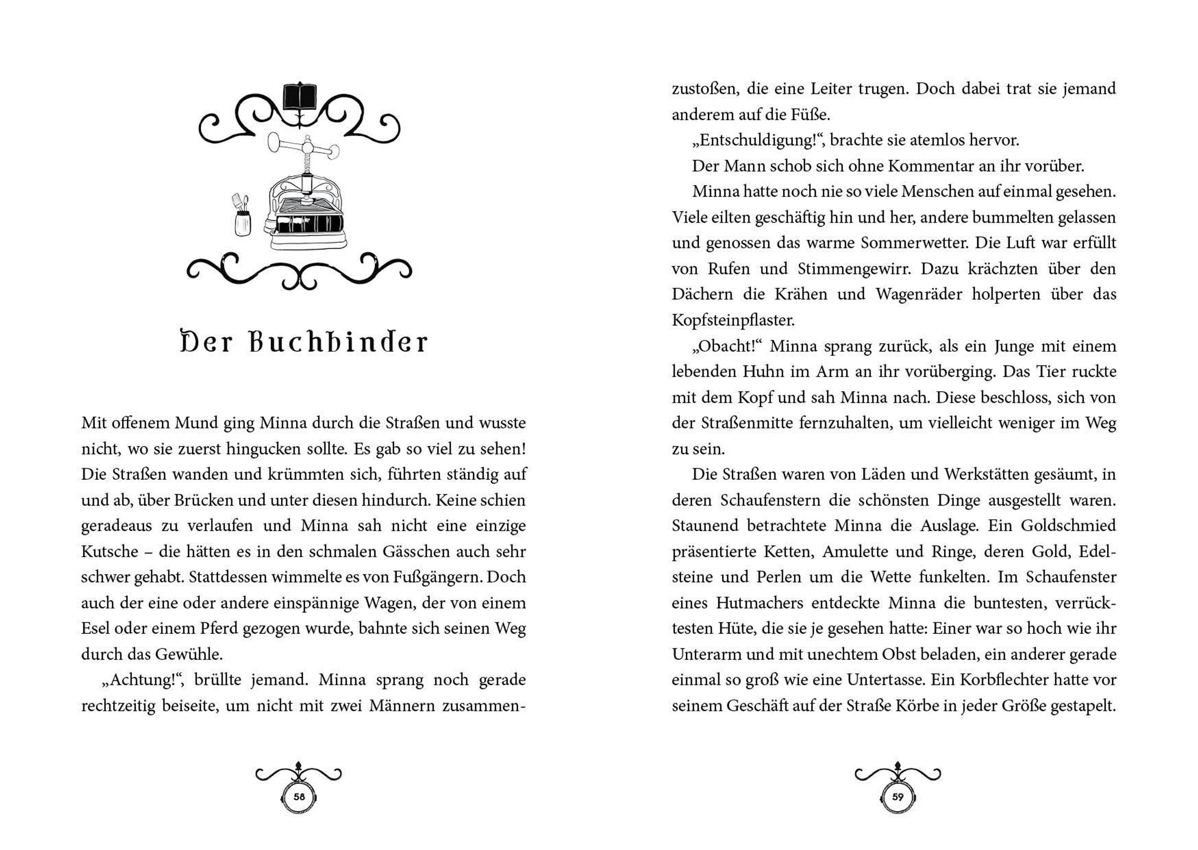 Das 12-jährige Waisenmädchen Minna will nicht zaubern. Sie träumt davon, ein echtes Handwerk zu erlernen! Doch als sie ausgerechnet in der magischen Stadt eine Lehre beginnt, warten auf sie allerlei Verwicklungen und Abenteuer. Als Junge verkleidet gelingt es Minna tatsächlich, eine der begehrten Lehrstellen zu ergattern. Dumm nur, dass der mürrische Buchbinder, bei dem sie in die Lehre geht, nie wieder ein Buch binden will. Irgendetwas stimmt da nicht. Wird Minna es schaffen, hinter sein Geheimnis zu kommen? Was verbirgt sich in den dunklen Katakomben der verbotenen Unterstadt? Und was hat das alles mit dem alten Schlüssel zu tun, der einst ihren Eltern gehörte? Eine neue Fantasy-Welt voller Rätsel, Spannung und Magie!