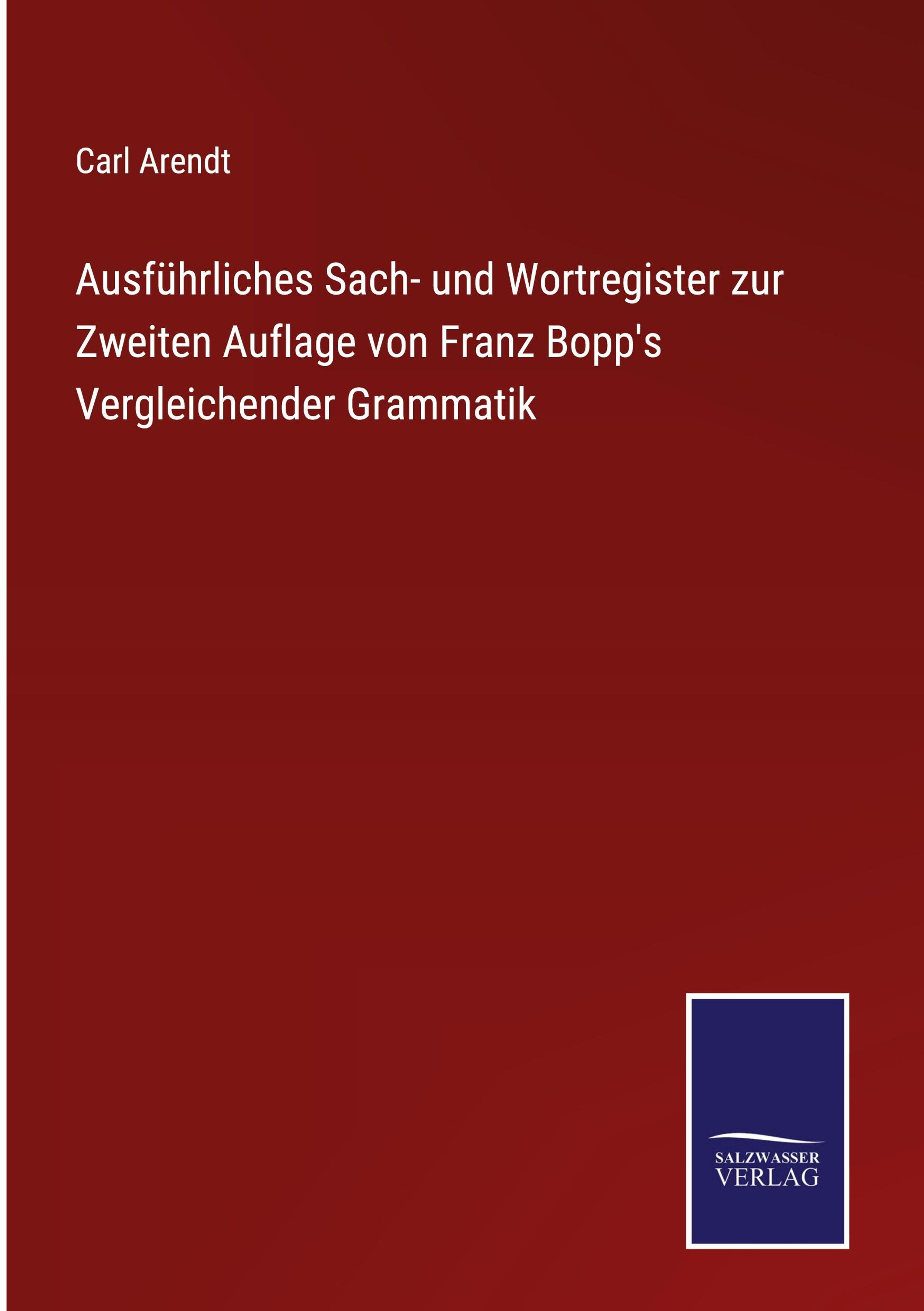 Carl Arendt: Ausführliches Sach- und Wortregister zur Zweiten Auflage von Franz Bopp's Vergleichender Grammatik, Gebunden