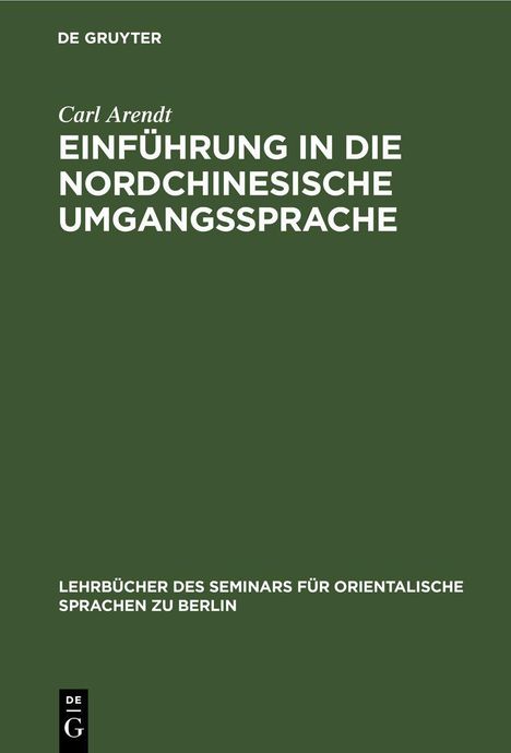 Carl Arendt: Einführung in die nordchinesische Umgangssprache, Gebunden