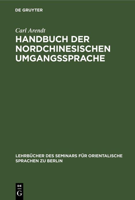 Carl Arendt: Handbuch der Nordchinesischen Umgangssprache, Gebunden