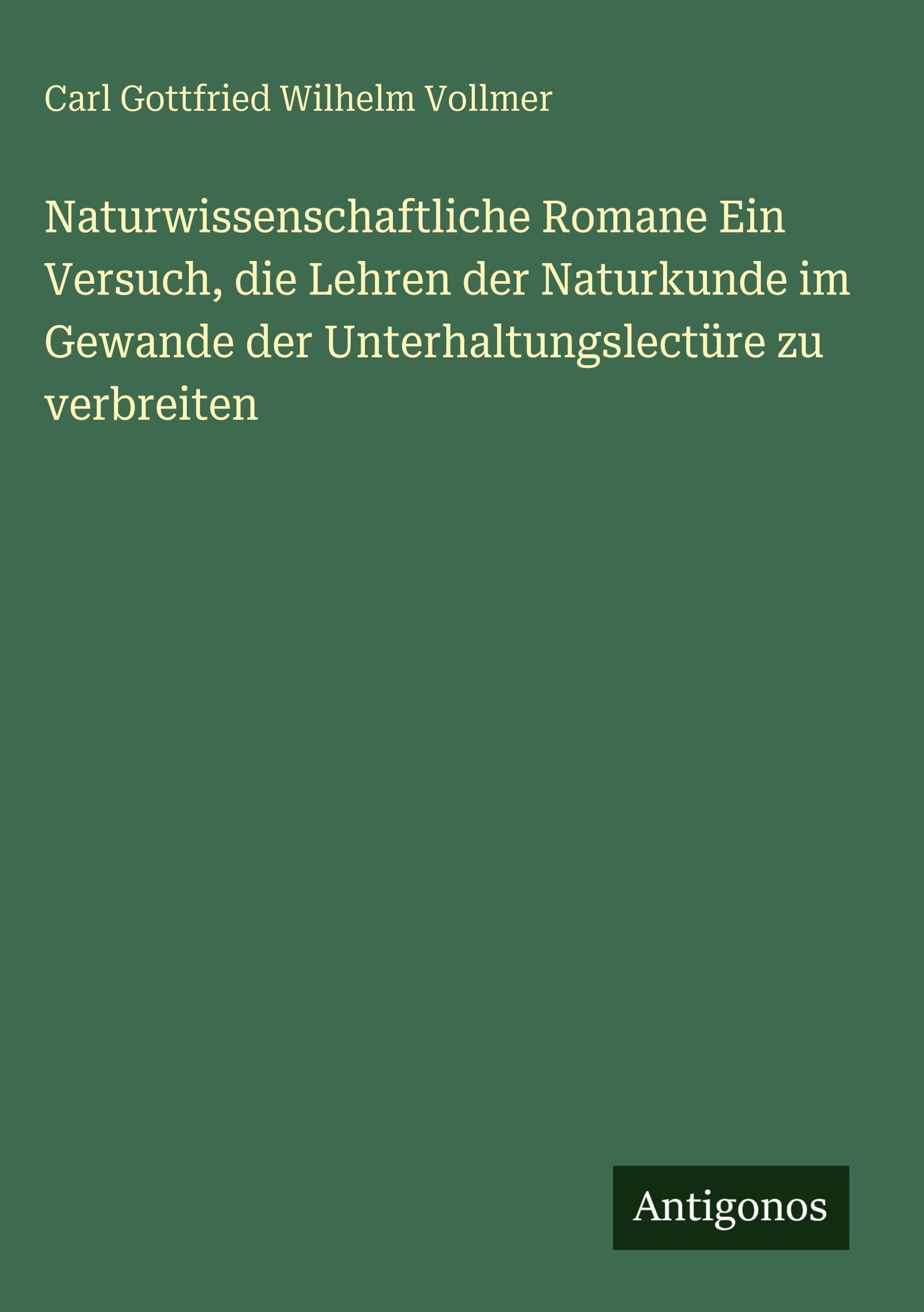 Carl Gottfried Wilhelm Vollmer: Naturwissenschaftliche Romane Ein Versuch, die Lehren der Naturkunde im Gewande..., Gebunden