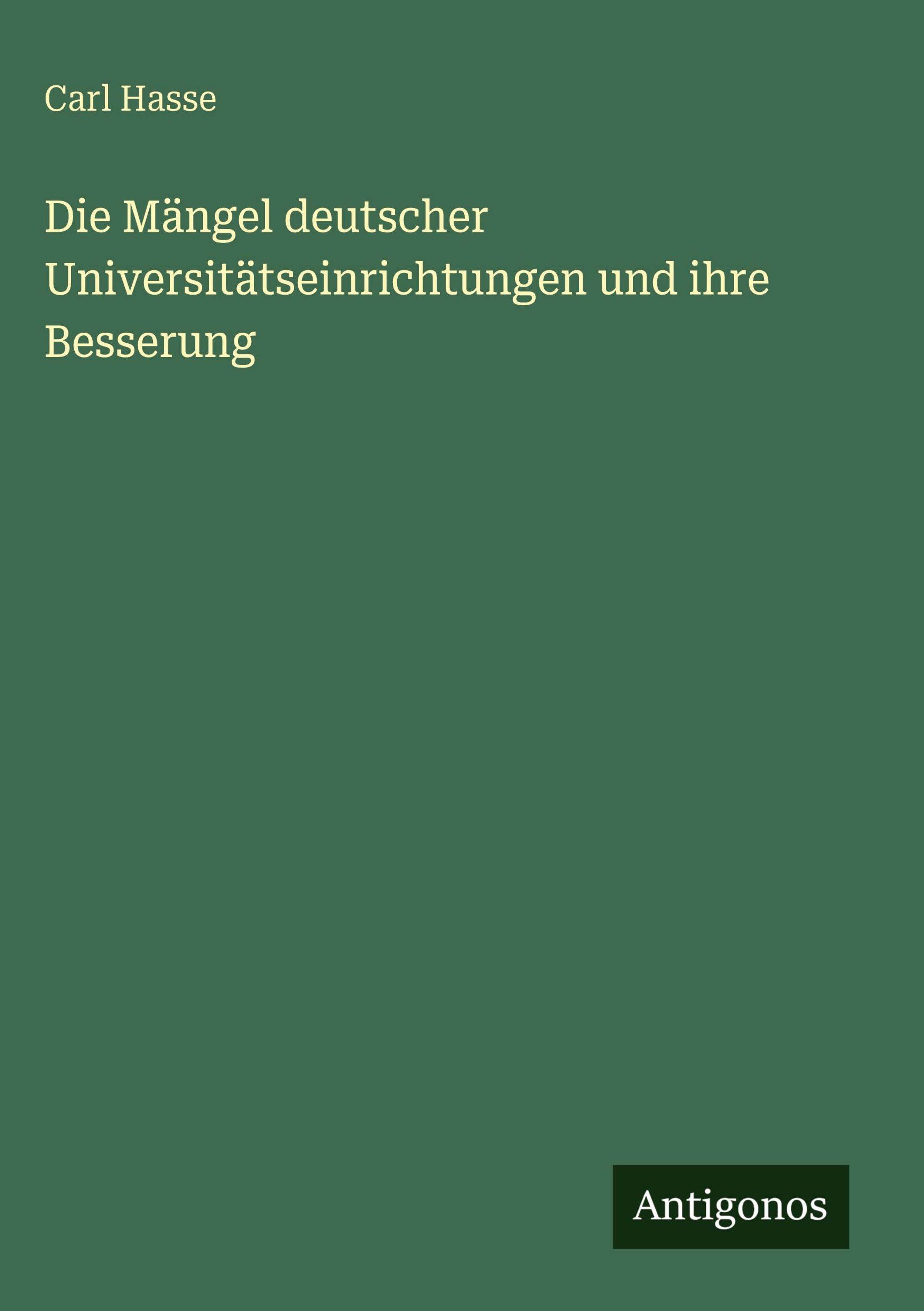 Carl Hasse: Die Mängel deutscher Universitätseinrichtungen und ihre Besserung, Gebunden