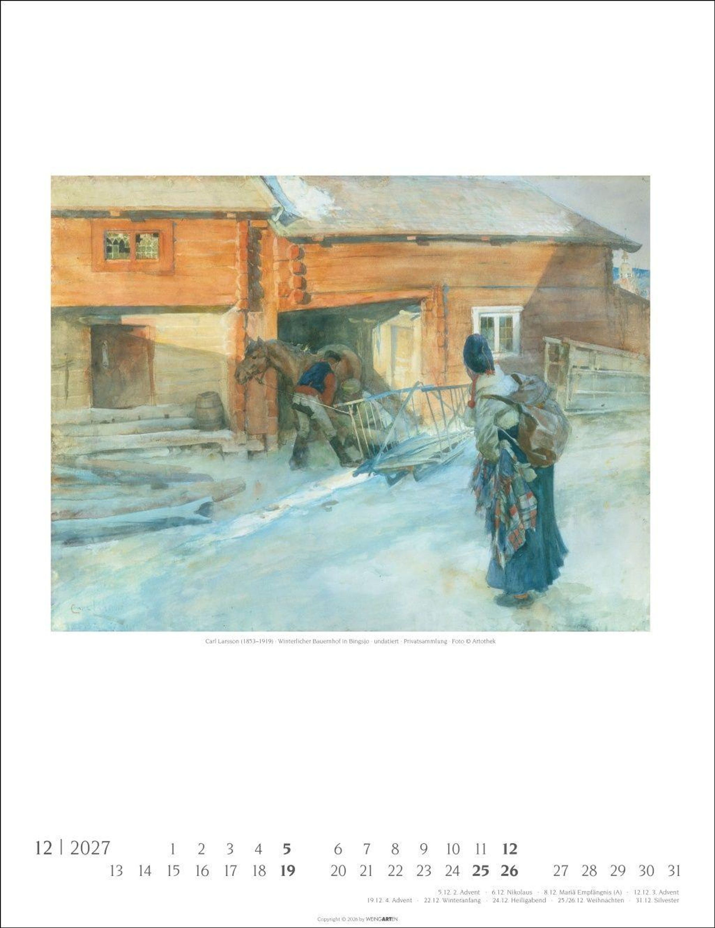 Monat für Monat ein Aquarell des berühmten schwedischen Künstlers bewundern in einem Carl-Larsson-Kalender 2027 im Format 30 x 39 cm