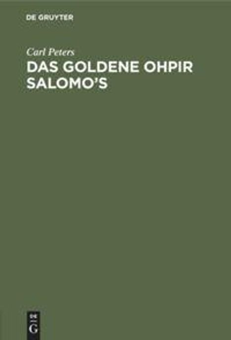 Carl Peters: Das Goldene Ohpir Salomo's, Gebunden