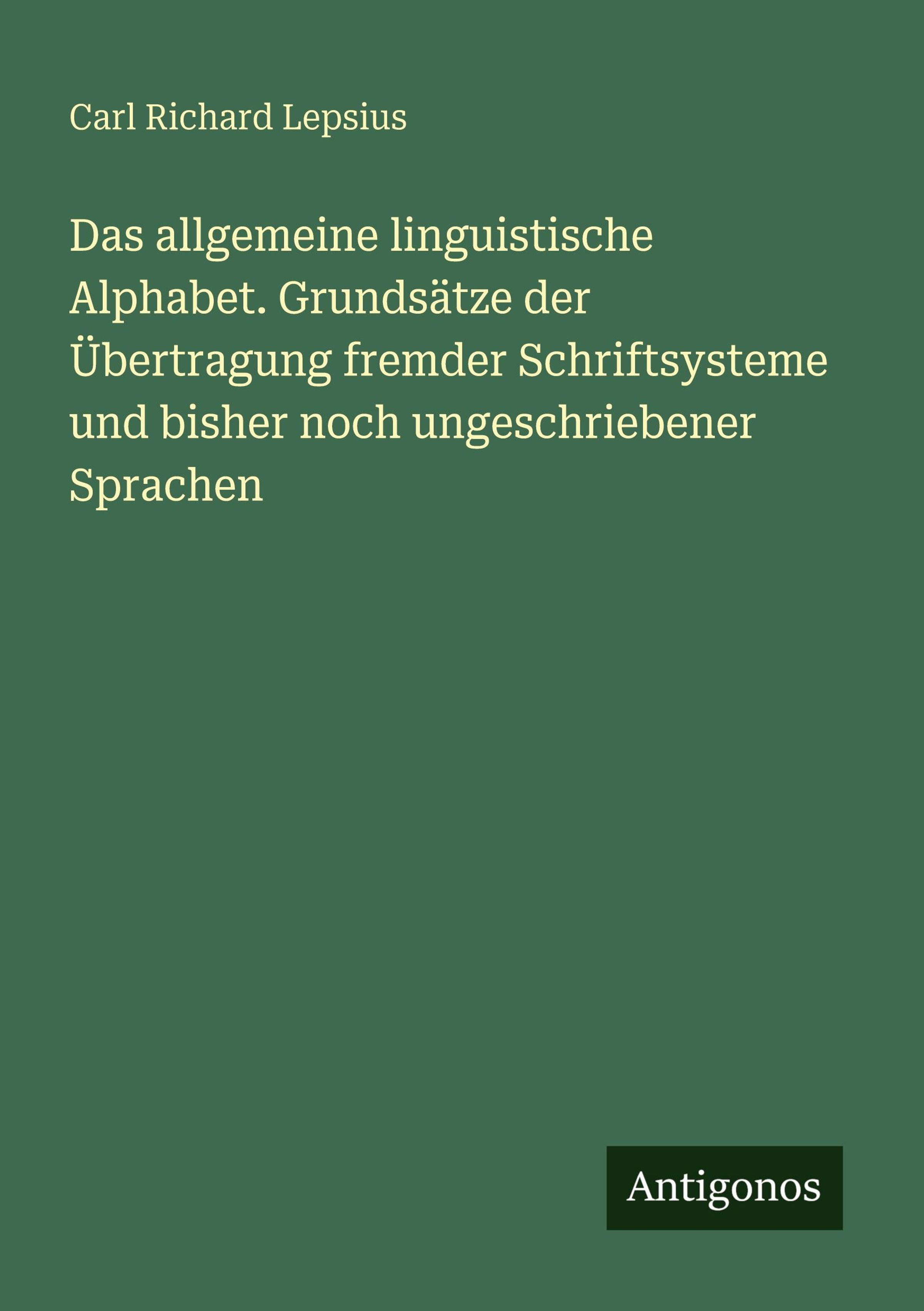 Das allgemeine linguistische Alphabet. Grundsätze der Übertragung fremder Schriftsysteme und bisher noch ungeschriebener Sprachen