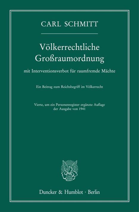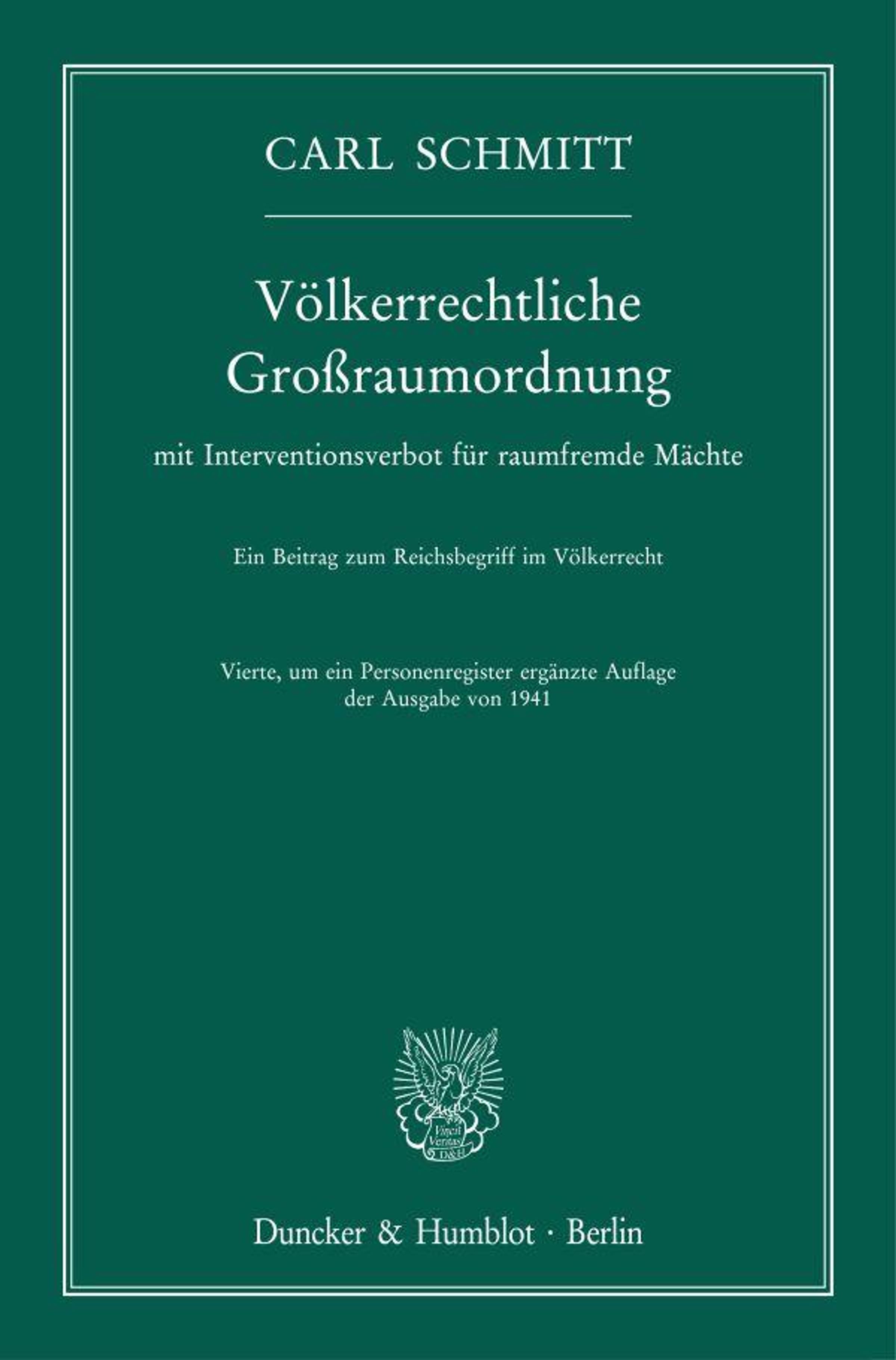 Die vorliegende Ausgabe der >>Völkerrechtlichen Großraumordnung<< enthält außer kleineren Verbesserungen ein neues Schlußkapitel über den >>Raumbegriff in der Rechtswissenschaft<<. [...]
