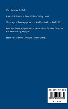Carl Spitteler: Balladen. Vollständige Neuausgabe der Ausgabe von 1896