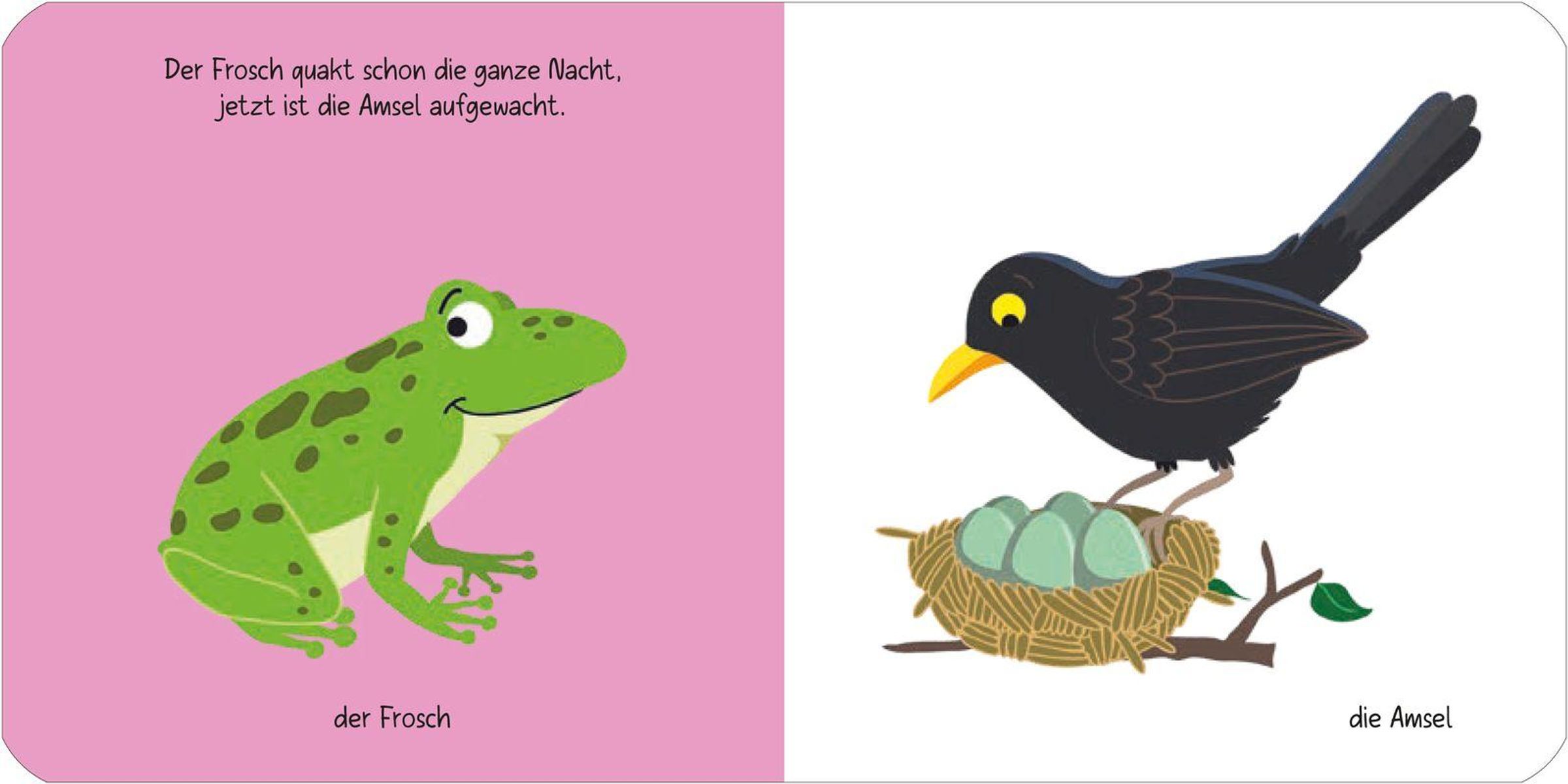 Dieses erste kleine Bildwörterbuch zeigt in bunten Bildern Babys Tierwelt mit niedlichen Tierbabys, lieben Haustieren und wilden Tiergiganten. Kurze und eingängige Reime helfen mit Sprachmelodie und Rhythmus beim Wiedererkennen und Nachahmen. Ein erstes Bilderbuch für den riesigen Entwicklungsschritt zum Sprechenlernen!