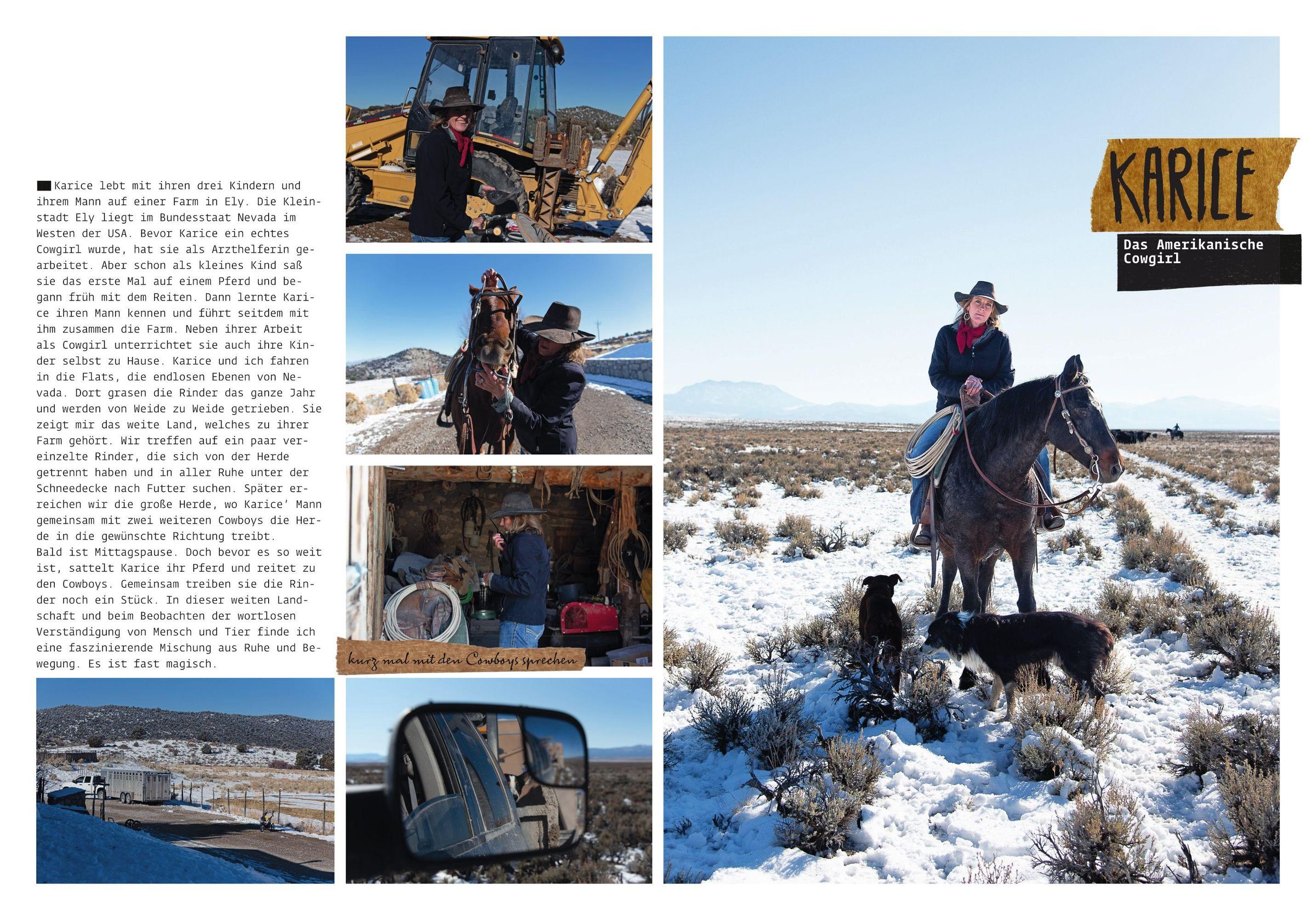 Text: "Carla Pohl, AUS DEM TAGEBUCH EINER TOTOGRAFIN, Teil I, Notizen über Mutter Natur und ihre Helferinnen." Hintergrund: schneebedeckte Landschaft., Buch